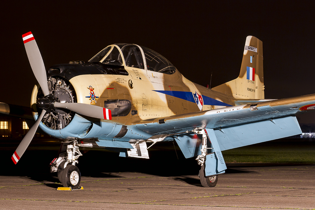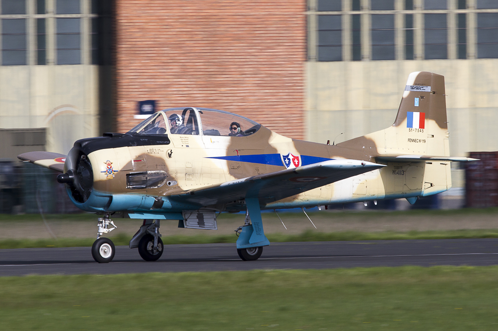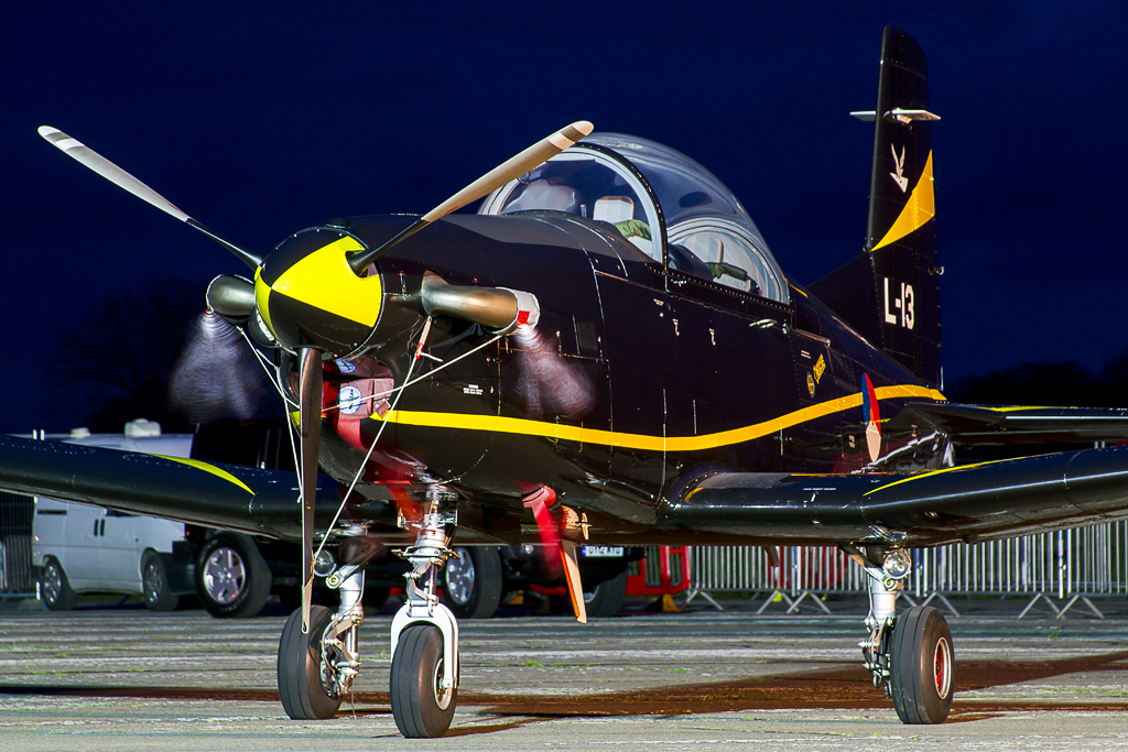 The static display area was split in two with the showground entrance running through the middle. On one side were the static only items consisting of the spare display Grob Tutor and Tucano, a Pilatus PC-7 from the Royal Netherlands Air Force, Tony De Bruyn’s OV-10B Bronco and a Grob Vigilant from the locally based 612 Volunteer Gliding Squadron. The other side of the grounds hosted the visiting aircraft, along with those that would be taking part in the flying display later in the afternoon. Already on the ground in the morning were the Dakota ‘Drag ‘em oot’, T28 Fennec and the RAF display Tucano, Tutor and King Air. Also on static display was an RAF Merlin that the crew had opened for visits. Judging by the constant queues it was certainly enjoyed by a lot of people. Adding to this the constant arrivals throughout the morning (of both the remaining display aircraft and visitors), there was always something to watch.