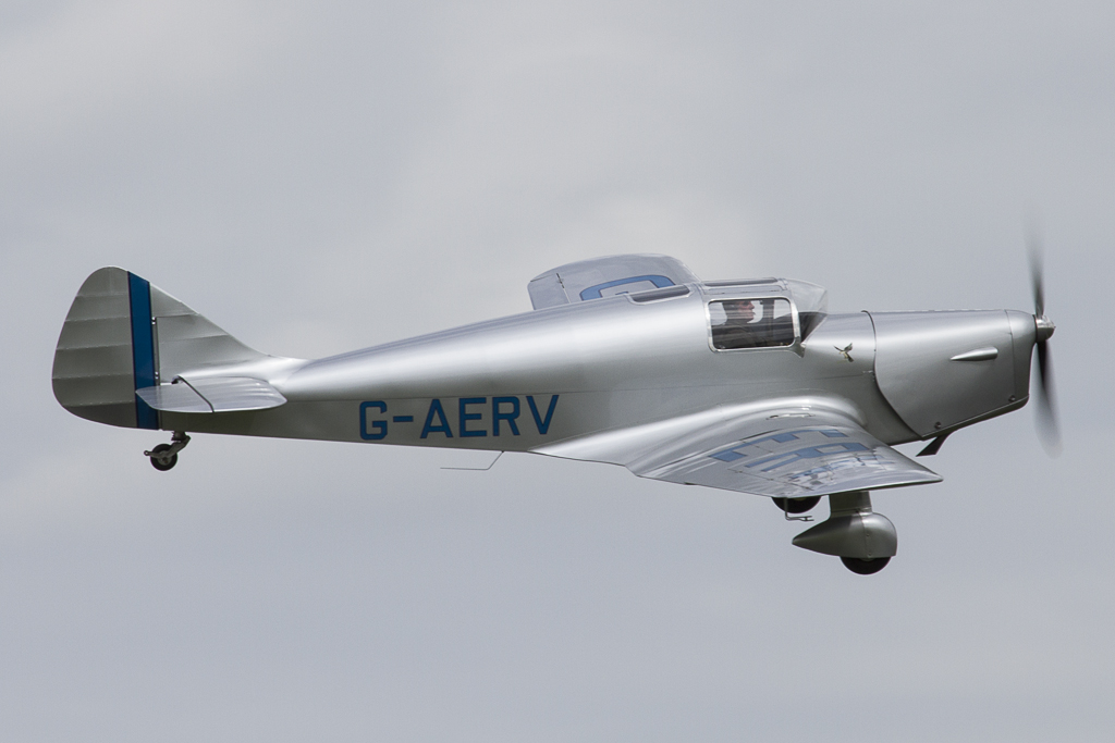 In complete contrast from the loud and fast pace of the Mustang display, the next aircraft to take to the skies was much more subtle and graceful. The Miles M.11 Whitney Straight is one of only two survivors of the type – produced during the 1930’s.Its gentle pace gave plenty of time to admire the bright silver paintwork in the brief periods of sun breaking through the ever thickening cloud. With the show running slightly early a few extra passes kept the crowd looking towards the sky whilst waiting for the next aircraft to arrive.