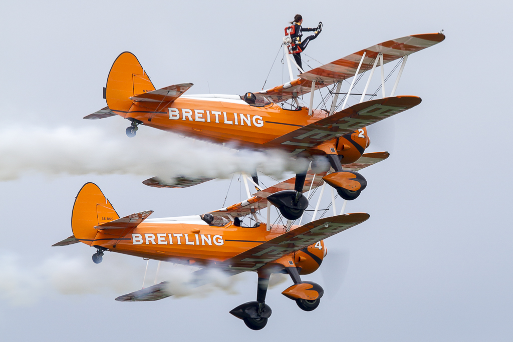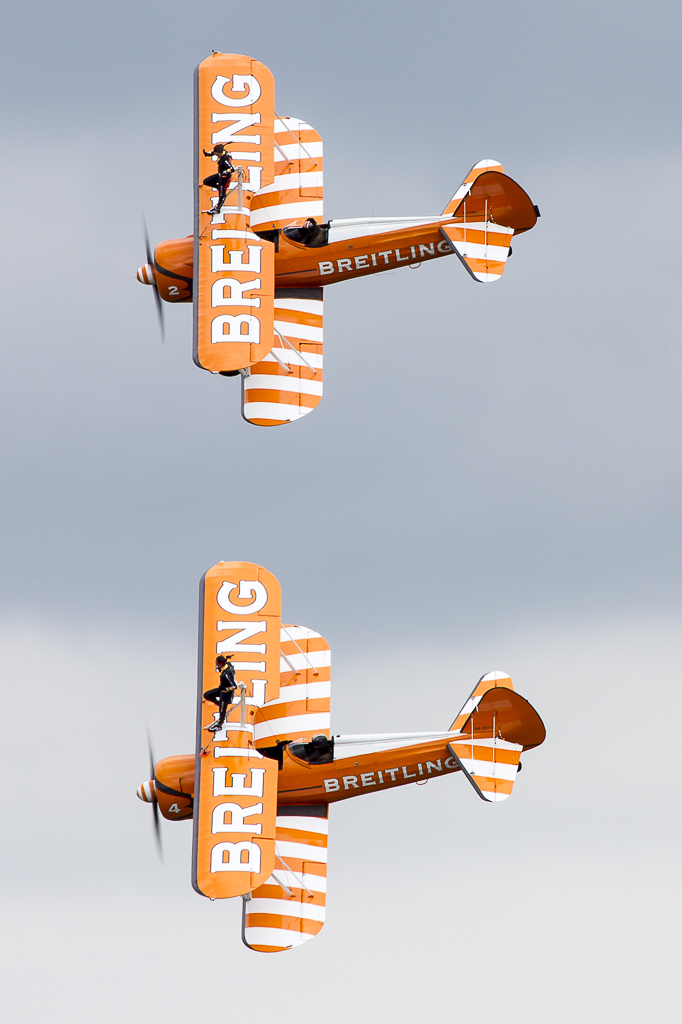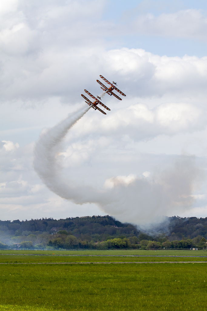 Another airshow regular took to the skies after the Tucano landed, with the unique Breitling Wingwalkers in their bright orange Boeing Stearman biplanes. Complete with two brave girls on top they put on their usual display of tight aerobatics and breath-taking crossovers all whilst the girls performed their own routine in perfect time. If anyone managed to get a close up of them, its clear to see the force that they were performing under and given the chill in the air it must certainly have been cold up there.