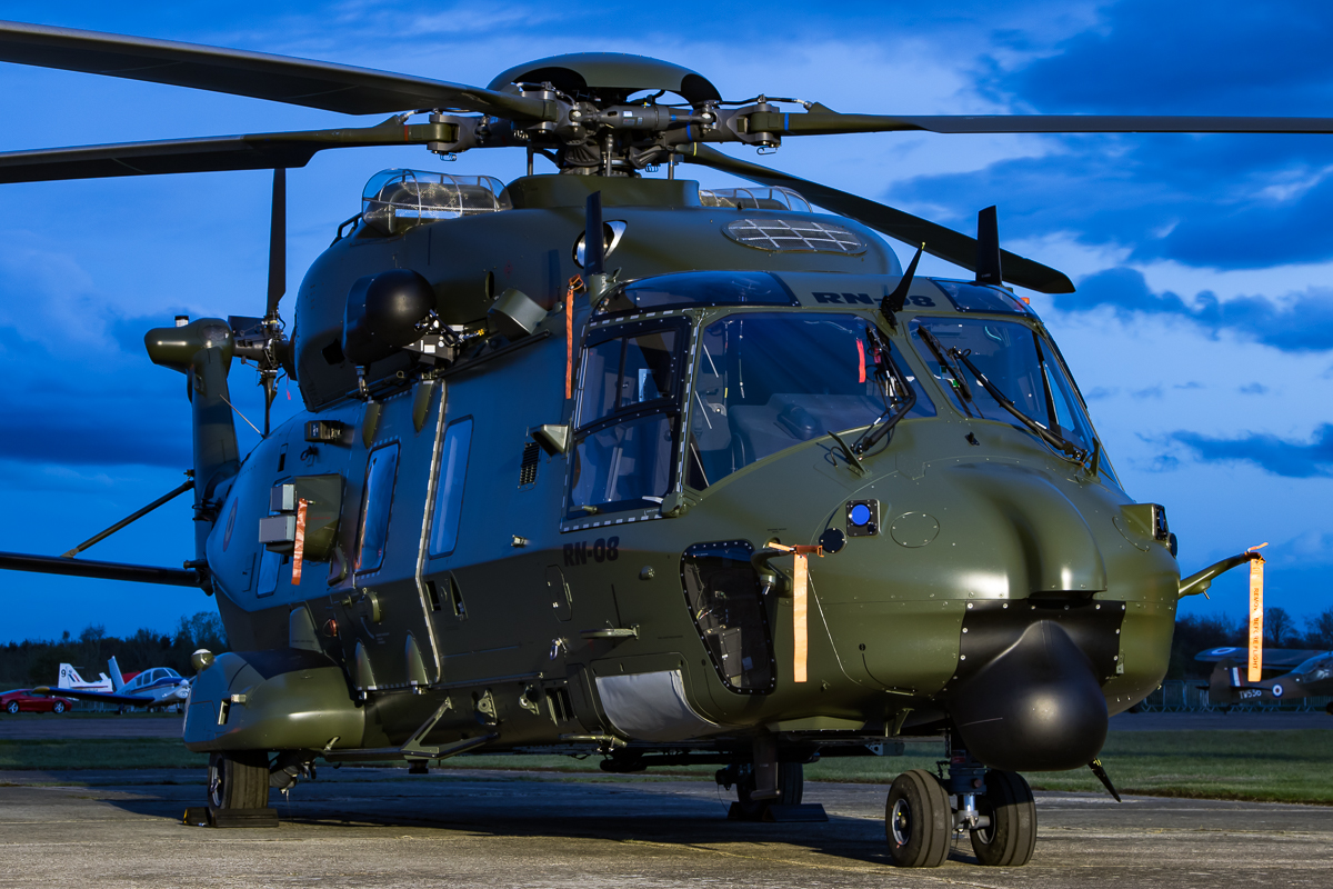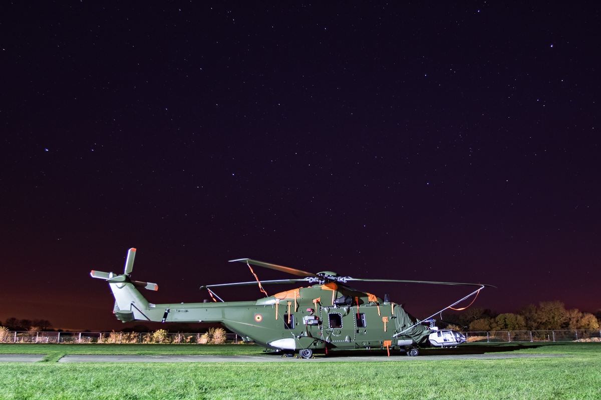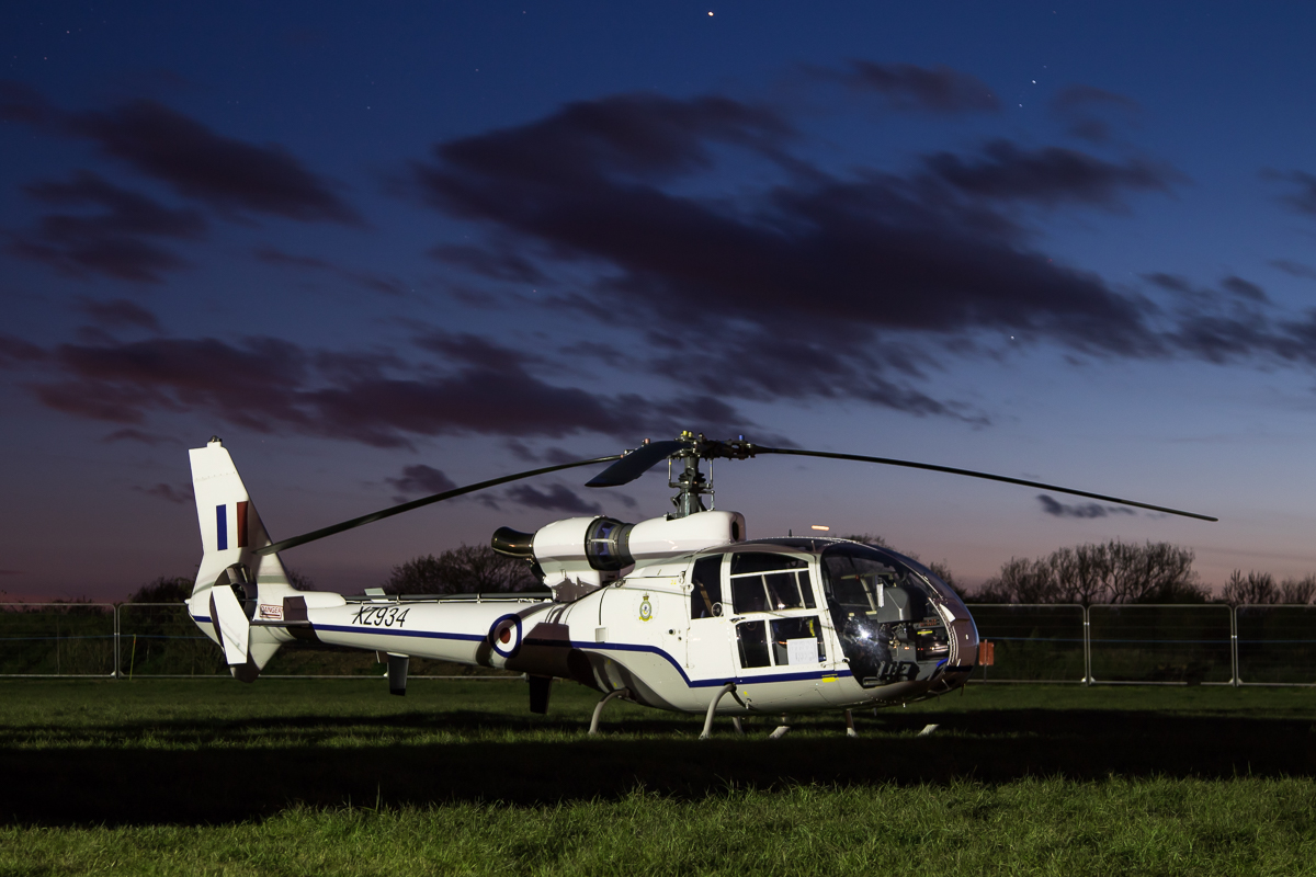 A trio of rotary types, from one size extreme to the other, formed some of the evening’s highlights. Parked up next to each other, the gave a perfect comparison not only of their differing sizes but also their technological complexity. The Gazelle Squadron had arrived earlier with two of their aircraft in complimentary schemes – Guimbal Cabri G-SDTL and Westland Gazelle HT.3 XZ934/G-CBSI. Whilst unable to engine run either, the ground crew were able to provide a brief period of ‘lights on’ with the Cabri. Dominating the pair though was the Belgian Air Force NH-90 TTH (RN-08) – a real star of the entire weekend events. The crew were kind enough to remove the ‘bags and tags’ – of which there are a vast amount covering the array of sensors and panels – from the airframe for a lengthy period enabling plenty of time to get the shots wanted by many.