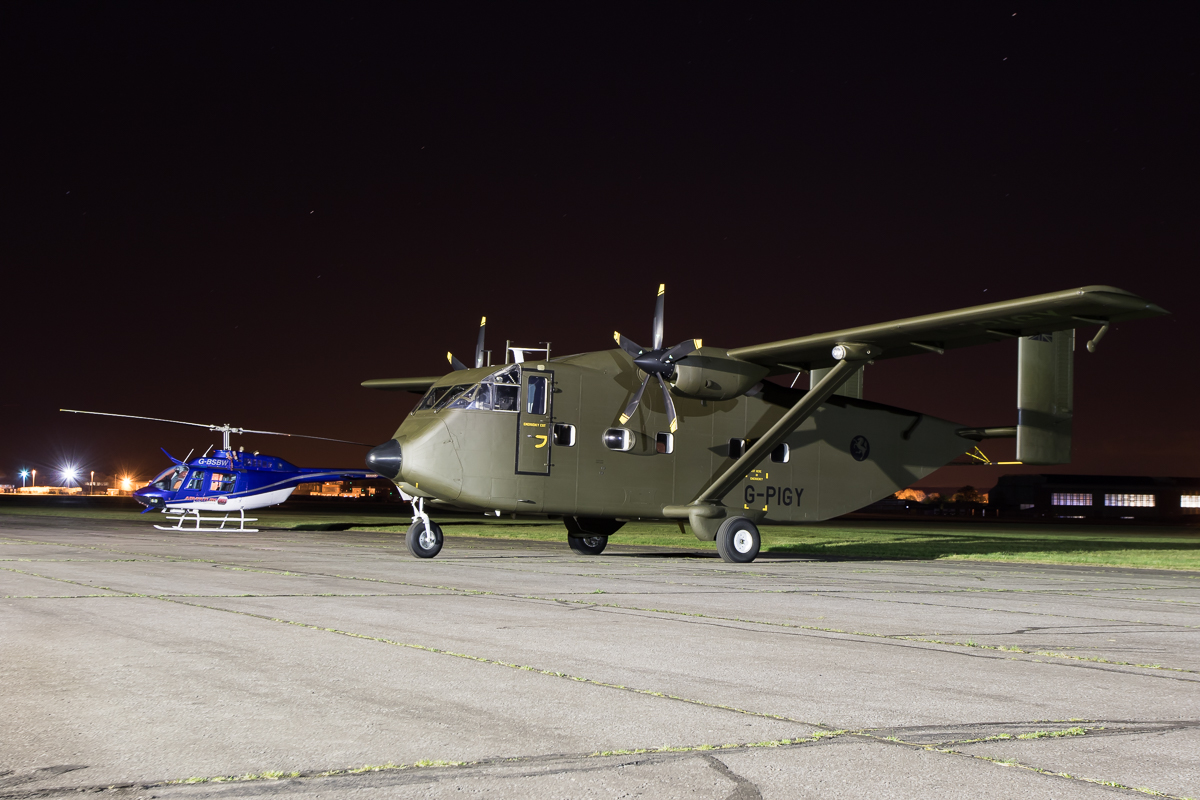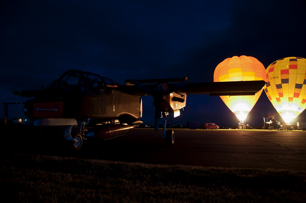 Unlike previous years, those attending were also treated to a couple of engine runs that were started off by Scottish Aviation Bulldog XX624/G-KDOG. Parked next to a Ferrari 360, the run surprised many due to how early in the evening it was with a large number of photographers already wandering the airfield looking for sunset shots or awaiting the inflation of two hot air balloons from The Oxford Balloon Company. Whilst the first envelope inflation didn’t quite go to plan, this was to be a benefit for those waiting to shoot it as it led to a delay in proceedings – plenty long enough to allow darkness to fall. This enabled a true ‘night glow’ to take place with a pair of balloons inflated against a backdrop of the attending Short SC7 Skyvan G-PIGY – the noise of the burners echoing around the night sky. Operated by the Bronco Demo Team, G-PIGY had arrived earlier in the day along with OV-10B Bronco 99+18/G-ONAA – adorned in its new Tiger marks – after their annual Bronco Fan Day held at Kemble airfield.