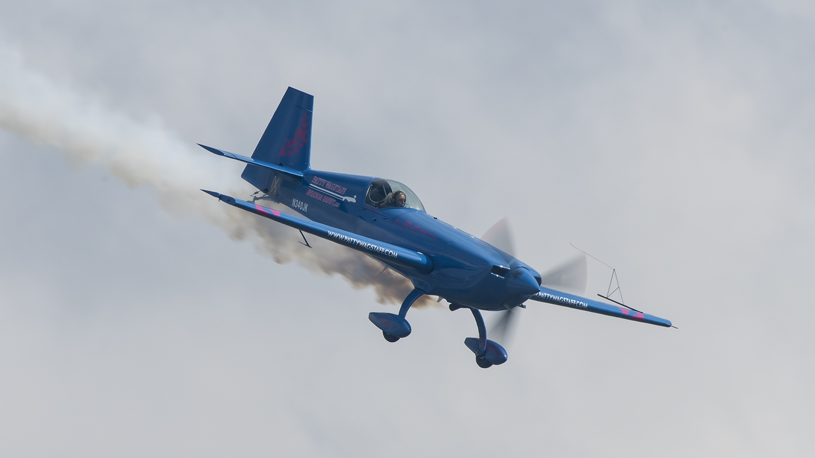 The award for the busiest pilot of the day must go to Kent Pietsch and his Interstate Cadet. Performing three times throughout the display, each gave something very different to entertain the crowd. Opening with the comedy routine whereby Kent ‘interrupted’ an earlier display by Quicksilver, this was followed by an impressive rooftop landing on an ageing Camper van before finishing with perhaps the most impressive of the three displays – an engine off aerobatic routine from 6,000ft. Whilst similar in design to the Piper Cub with which us ‘Brits’ are much more accustomed, watching Kent turn the Cadet into a glider and then fly a routine including loops and high bank angle turns really was something different – especially with the taxiway landing directly in front of the crowd to finish.