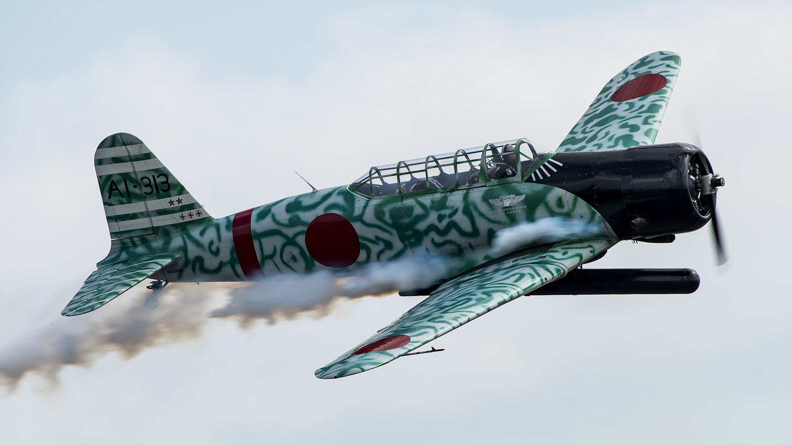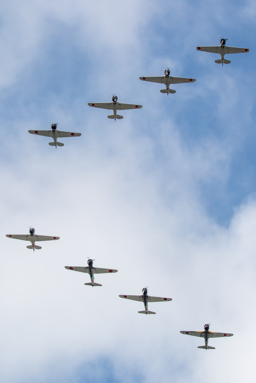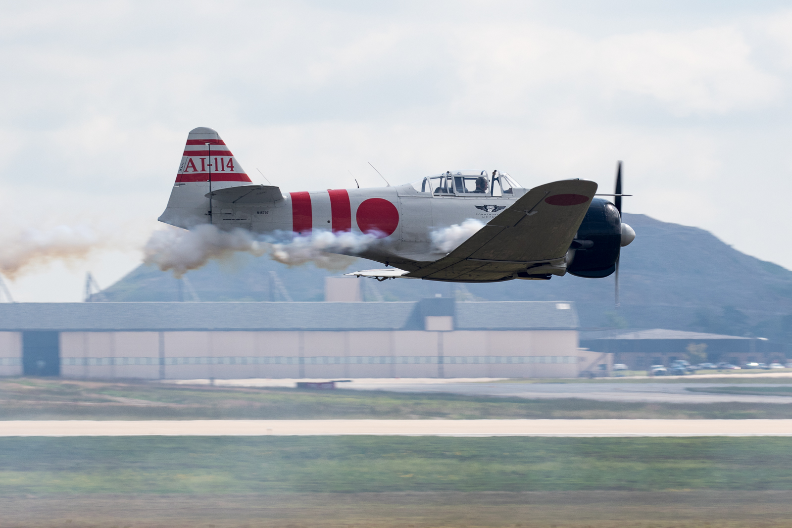 In the middle of the show lineup, a 45-minute segment was set aside for series of displays that commemorated the American war in the Pacific – from start to finish. On December 7, 1941, the Imperial Japanese Navy Air Service launched a surprise attack on Pearl Harbor leading to the United States entering the Second World War. This attack was represented by the Tora! Tora! Tora! Display Team who opened the segment with a formation of eight aircraft marked up as various Japanese types used in the attack – five Mitsubishi A6M “Zero” fighters and three Nakajima B5N “Kate” torpedo bombers. Accompanied by a very informative narration along with a seemingly never-ending barrage of pyrotechnics, the display consisted of close, low passes along the crowd along with diving strafing runs in the background. A truly non-stop 20 minutes, the only downside was the sheer volume of smoke from both the pyrotechnics (and the aircraft’s own smoke systems) that, helped by the wind, made it very difficult to see most of the display.