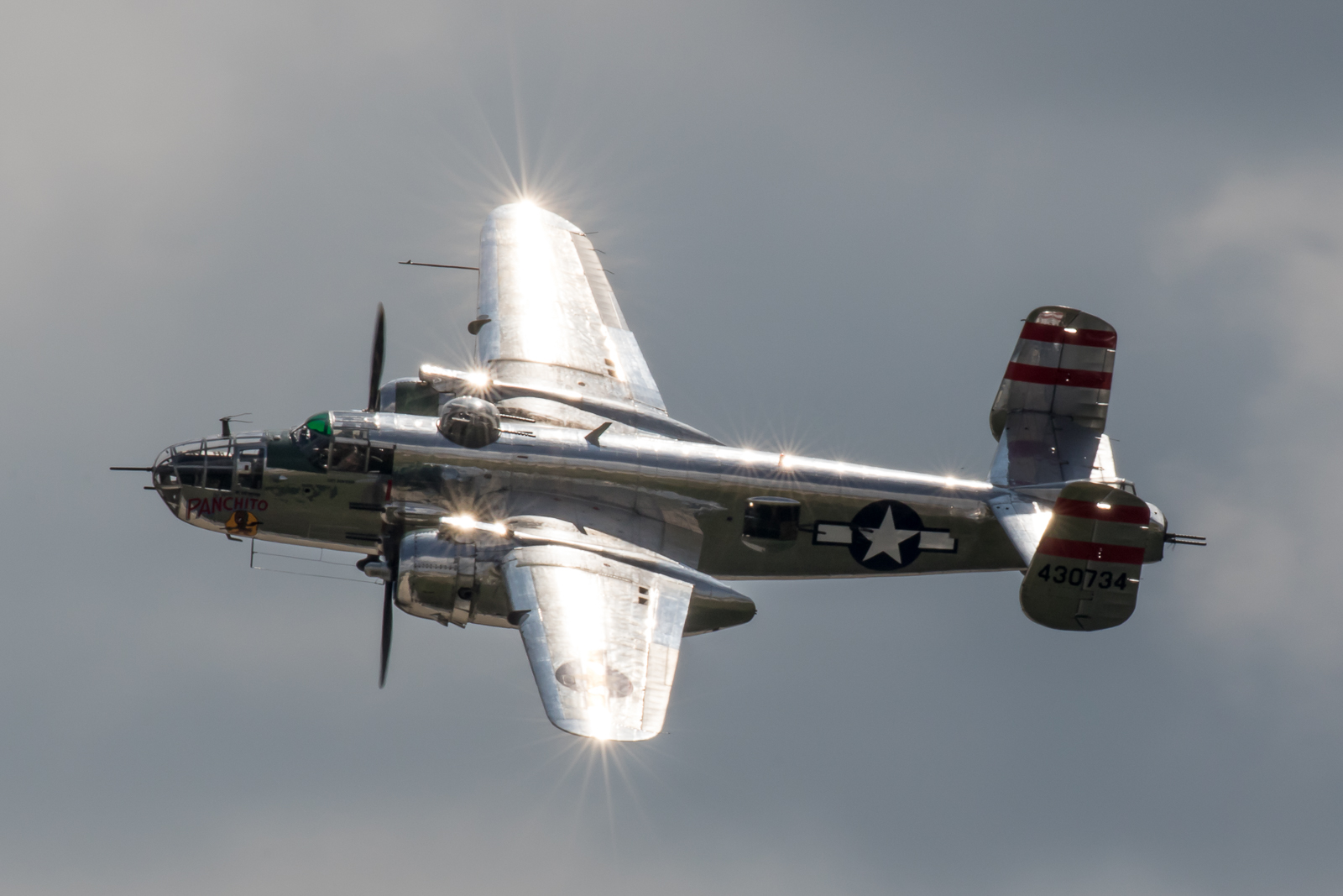 Following on after were solo displays from four beautiful multi-engined warbirds that had previously been seen as part of the static display during the morning. First up was ‘Panchito’ representing the type that first struck the Japanese mainland during the daring Doolittle Raid. Although the aircraft itself entered service too late to see wartime action, the original Panchito did operate in the Pacific theatre with the 41st Bombardment Group.