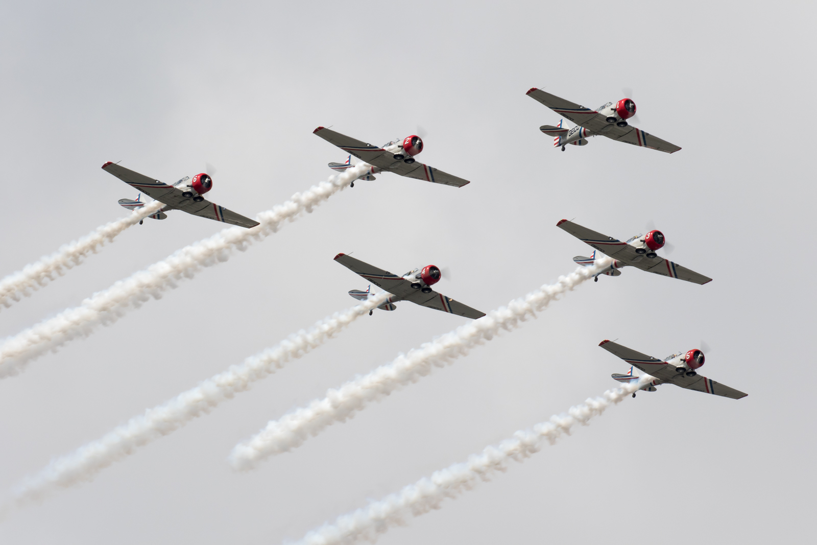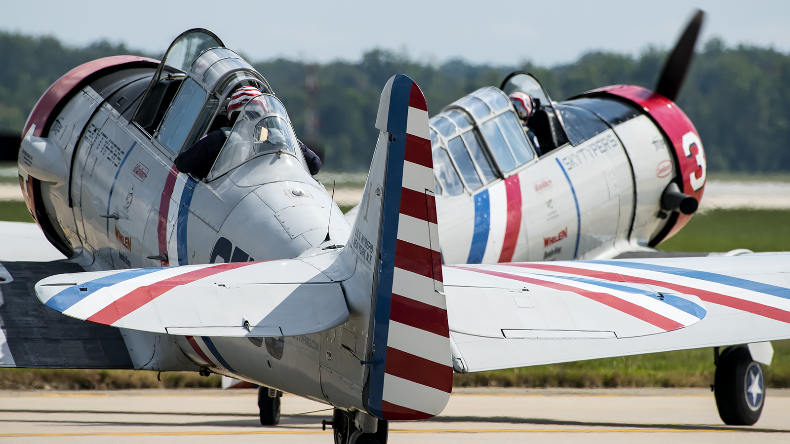 Sponsored by well-known car insurance giant Geico, the Geico Skytypers are often seen both on the lineup at US shows and also in the distance with their distinctive ‘skytyping’. However, Andrews was treated to a more traditional formation display from the six SNJ-2 aircraft flying a number of crossover and horizontal breaks – their display being accompanied by that distinctive sounding Pratt & Whitney Wasp radial engine.