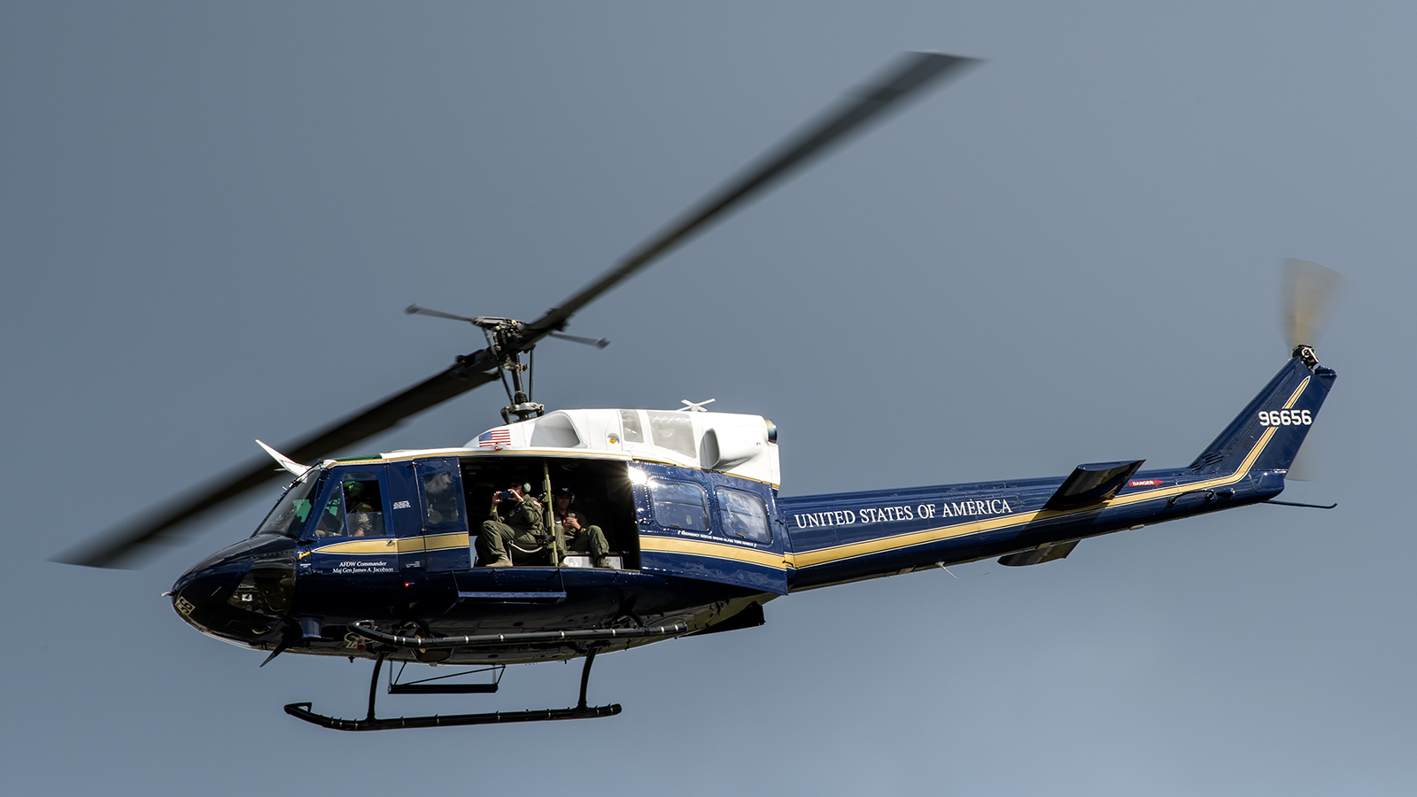 The job of starting the days flying display fell to two units that call Andrews home. In the lead was a single KC-135R operated by the 459th ARW with ‘her’ boom extended with a quartet of UH-1H Huey’s of the 1st Helicopter Squadron, 11th Wing following behind in a scene that was only missing Ride of the Valkyries playing. Tasked with VIP evacuation and airlift, the aircraft may now be ageing, however they look pristine in their dark blue scheme broken by a single gold stripe. Later in the day, a single example took to the air once more for a number of photo passes, something appreciated by many of the ground based photographers with the sun being in a much more favourable position.