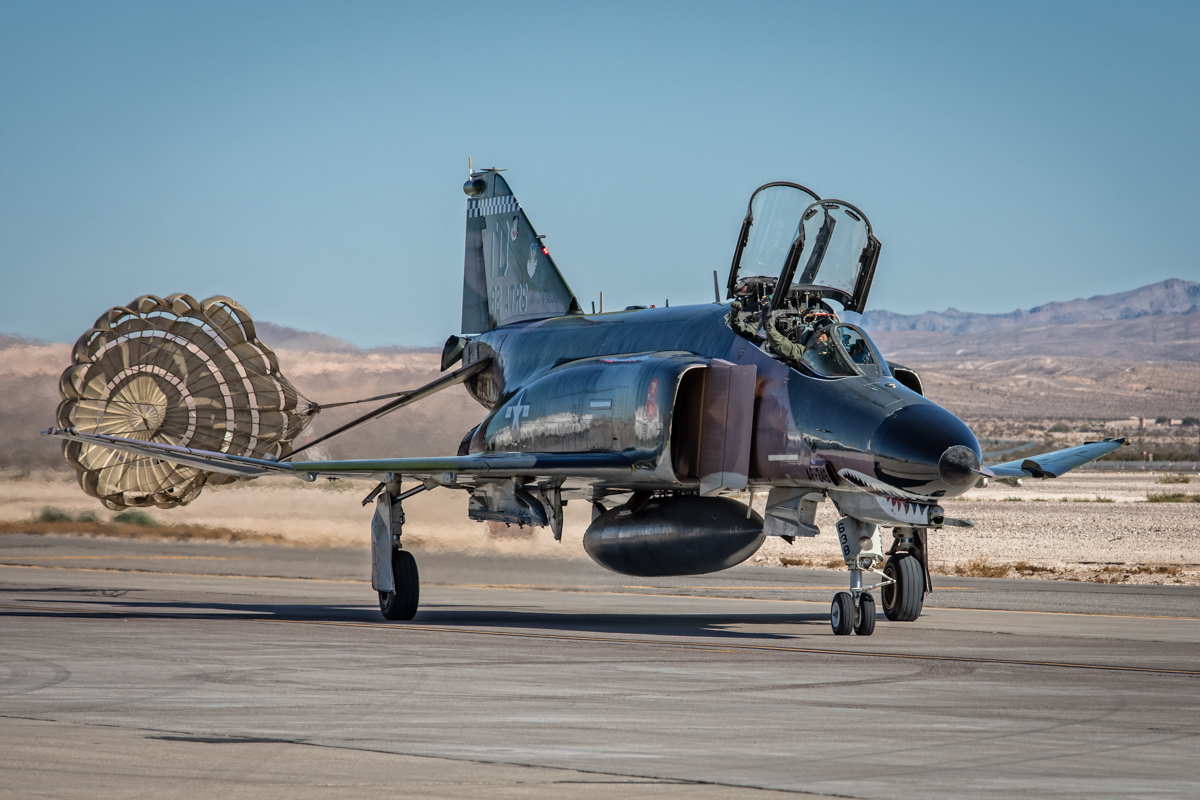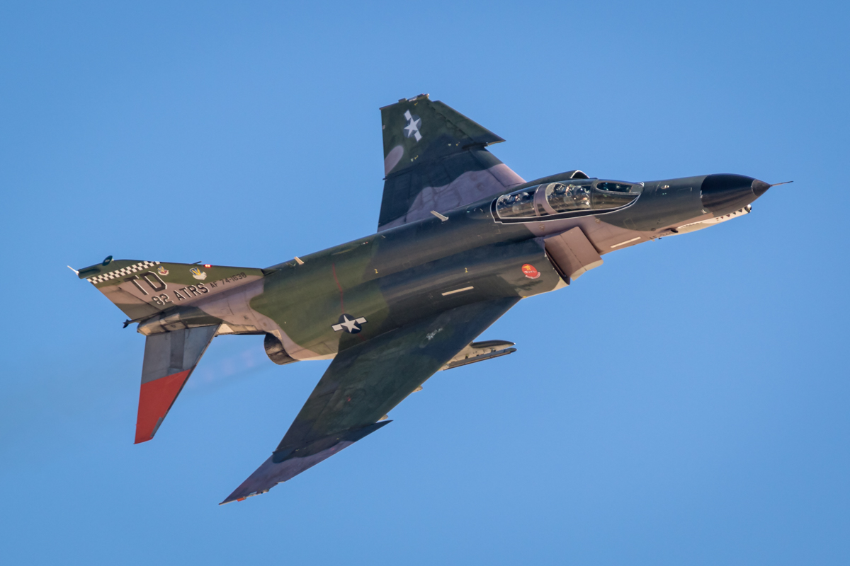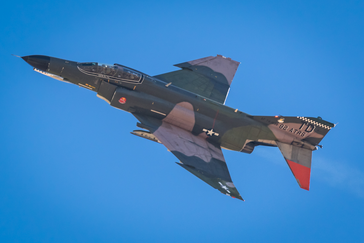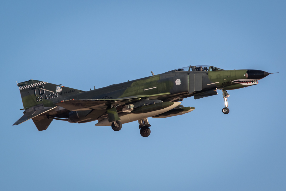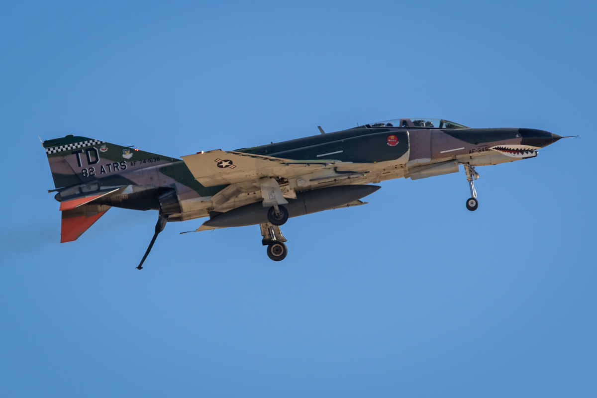 The QF-4s entered service in 1997 when they replaced the QF-106. During this time suitable candidate F-4 Phantoms were recovered from storage at the Aerospace Maintenance and Regeneration Group (AMARG) at Davis-Monthan AFB in Arizona and converted to be capable of unmanned flight by BAE Systems. Over 230 aircraft were converted during the programme and assigned to the 82nd ATRS where they have contributed to the test programmes for the AIM-9X Sidewinder and AIM-120 AMRAAM air to air missiles. Missile systems produced in the United States have to be tested for lethality against full-scale targets by an act of law before full production begins and so the ongoing unmanned aerial target programme is essential to the development of these systems. The two examples which attended the Nellis Open House were two of the last few remaining QF-4s which will either be destroyed or grounded by the end of the year and replaced by the next generation of full-scale aerial targets, the QF-16.