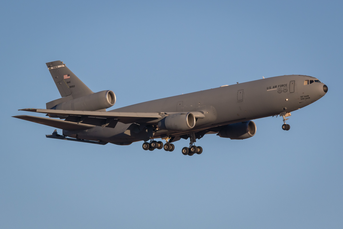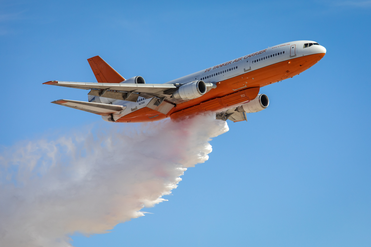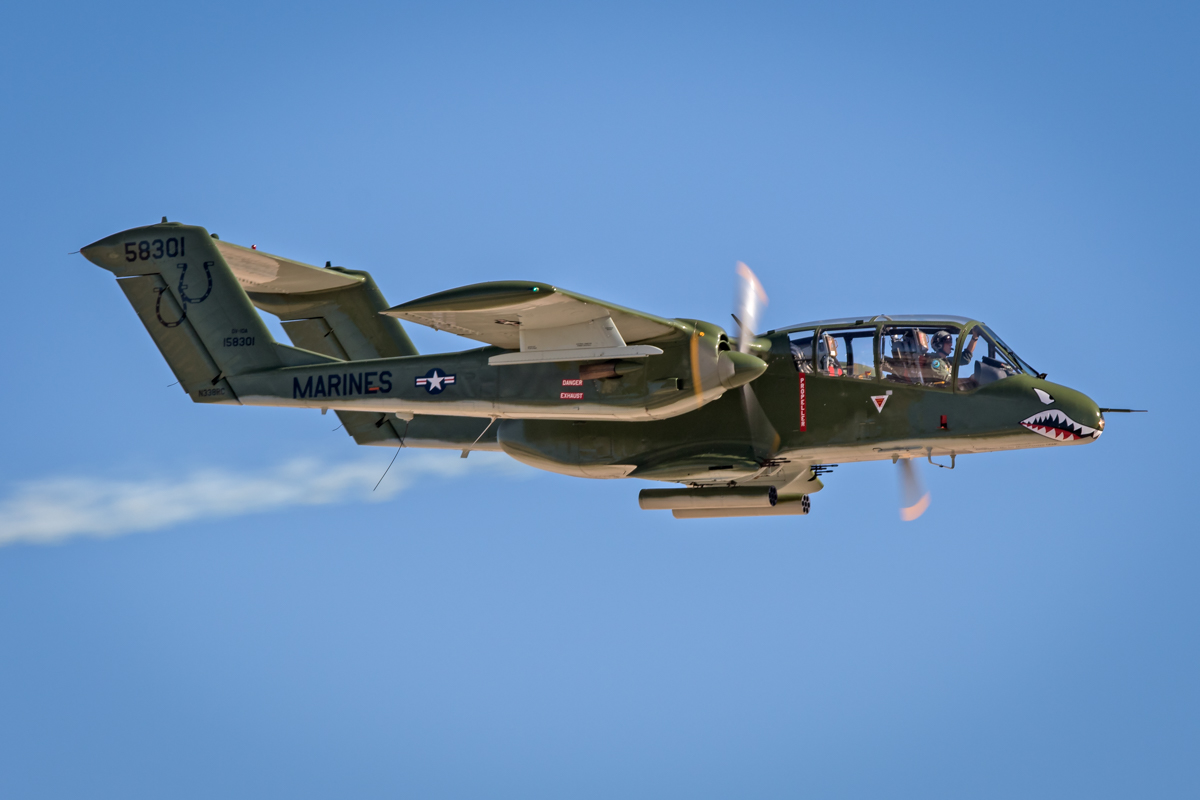 The next act in the Aviation Nation flying display comprised an OV-10 Bronco, a converted DC-10 airliner and a few thousand gallons of water. The display was provided by the civilian operator 10 Tanker Air who operates 3 of the wide bodied jets converted to carry 12,000 gallons of water and/or fire retardant in a belly mounted tank which can be released in 8 seconds over wildfires. Large scale wildfires are a particular issue in nearby California which regularly suffers from devastating fires requiring the response of these large air tankers, so it was fitting to see this impressive capability demonstrated at this show. The display started with a pass from the OV-10 Bronco, which was wearing 70s style US Marine Corps markings. Broncos are often used to mark trails for the larger aircraft to follow during firefighting operations. Then came the DC-10 which dropped half of its load on each day of water with a pink dye over the eastern side of the airfield making a very photogenic sight.