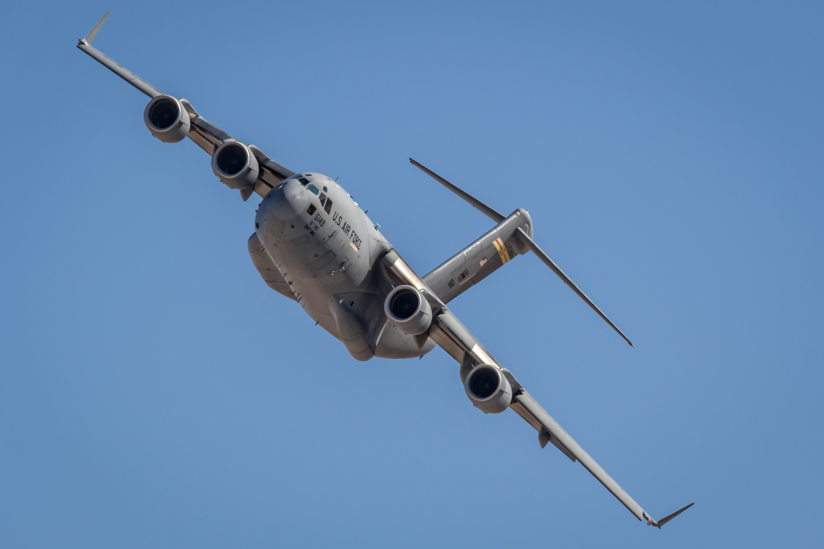 The first military aircraft flying display at Aviation Nation 2016 soon followed in the form of the C-17A Globemaster III demo team from the 535th Airlift Squadron at Joint Base Pearl Harbor. The display consisted of a series of graceful passes showing off the imposing bulk of the aircraft, some of the flight being very picturesque as the large aircraft turned in front of the mountains. On Sunday the C-17A demo began with a short field take off, starting from more than half way down the 10,000 ft. runway which was impressive and suitably noisy.
