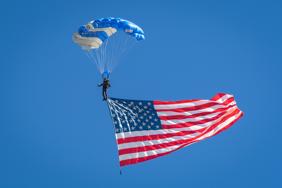 On both days the flying display started with the US Air Force Academy “Wings of Blue” parachute display team, dropping in from a C-17A Globemaster III. The last member of the team to land unfurled a very large American flag to coincide with the national anthem being played. The Aviation Nation flying display then moved on to two solo aerobatic acts, Vicky Benzing in her bright red Boeing Stearman and Chuck Coleman who flew a very tight and precise display in his Extra 300L. Following these acts was a formation aerobatic team, the West Coast Ravens. Aerobatic teams flying RV aircraft aren’t for everyone, but the Ravens are surely different in that they fly no less than 24 of the aircraft in formation at the start of their display later splitting into two formations of barely more manageable groups of 16 and 8. The Ravens are a group of pilots from the Western American states, many of whom built the aircraft that they fly.