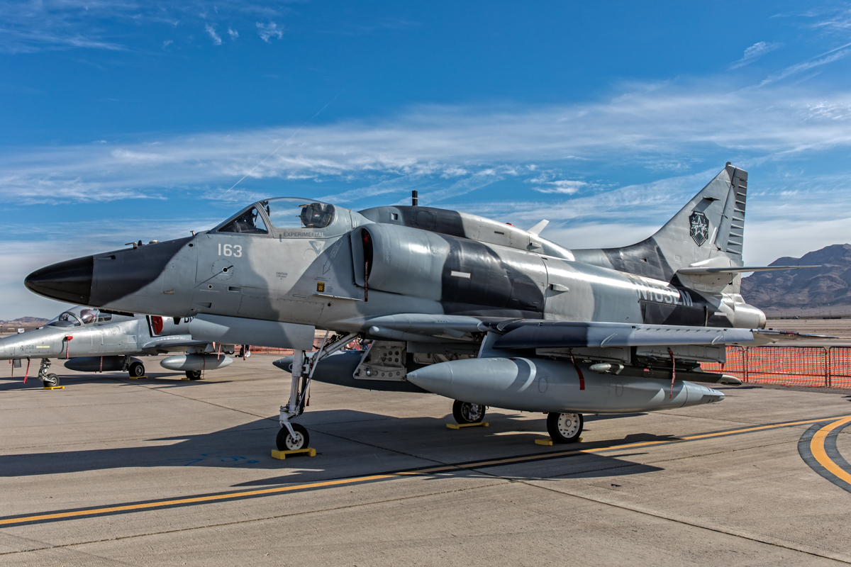 One of the major sponsors of this year’s Aviation Nation show was the private sector military contractor Draken International, who operate the largest fleet of privately owned military aircraft in the world. For the static display Draken provided examples of their Aeromacchi MB.339, Aero L-159E ALCA and A-4N Skyhawk aircraft – all of which are utilised to provide the military with Red Air threats for training purposes. Other civilian aircraft to grace the static section of the show included a Grumman Albatross – one of the previous mounts of the 66th Rescue Squadron during the 1950s at RAF Manston, who are now flying HH-60G Pave Hawks at Nellis – together with several static warbirds such as a P-38 Lightning, Spitfire MK.XIV and an F4U Corsair. Notable cancellations from the show were a B-17 (which was unfortunate given the types history at Nellis), US Navy E-6 Mercury and E-2C Hawkeye aircraft which were all due to be on static display. Perhaps most sadly missed were the NASA contingent of the rarely seen ER-2 High Altitude Science Platform (due for the flying display) and an Aero Spacelines Super Guppy (due for static display), both of which were very unfortunately unavailable for the show.