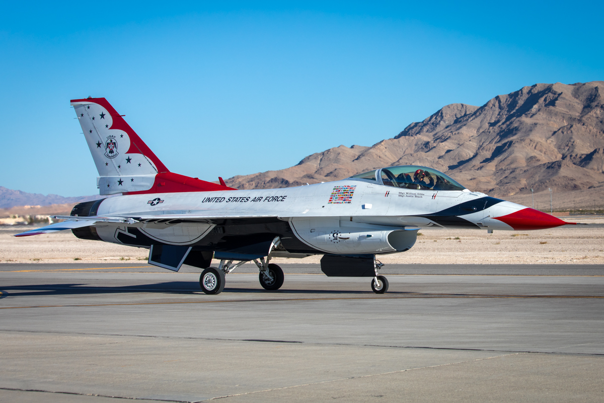 The Nellis Air Force Base open house or to give it the official title, Aviation Nation, is a renowned event that is often considered a bucket list show. The many attractions of Aviation Nation are easy to see with Nellis being one of the most famous fighter bases in the world, home to the United States Air Force (USAF) Aggressors with their amazing paint schemes as well as the Thunderbirds demonstration team. The airfield is sited within easy reach of Las Vegas with all that this brings for visitors to the show in terms of ease of transport, accommodation and evening entertainment. Aviation Nation is always held around Veterans and this provides an important remembrance aspect to the show; this year the show took place on 12th and 13th November. The weather in Nevada in mid-November is also fantastic with very little cloud, almost no rain and temperatures in the mid-twenties. Taking all this into consideration, first time attendee Paul Smith provides this report from Nevada, of an experience which certainly did not disappoint.