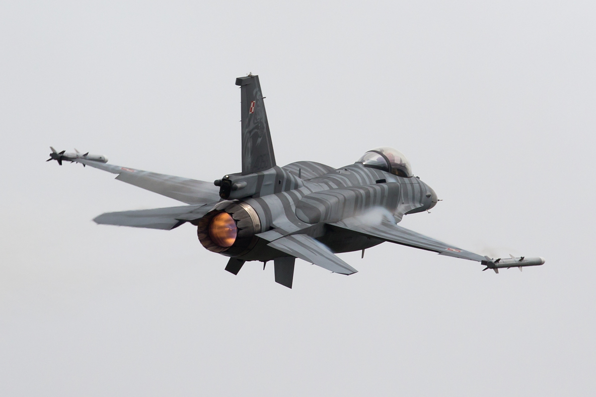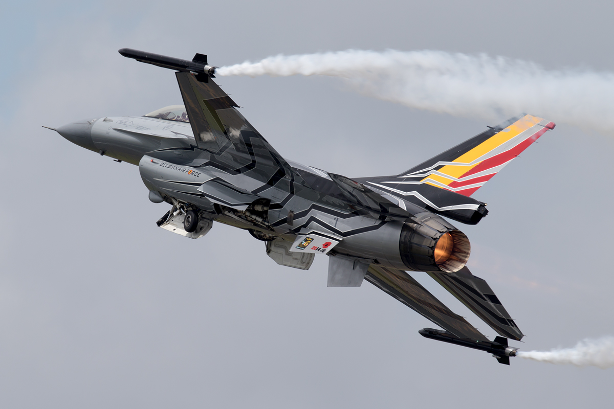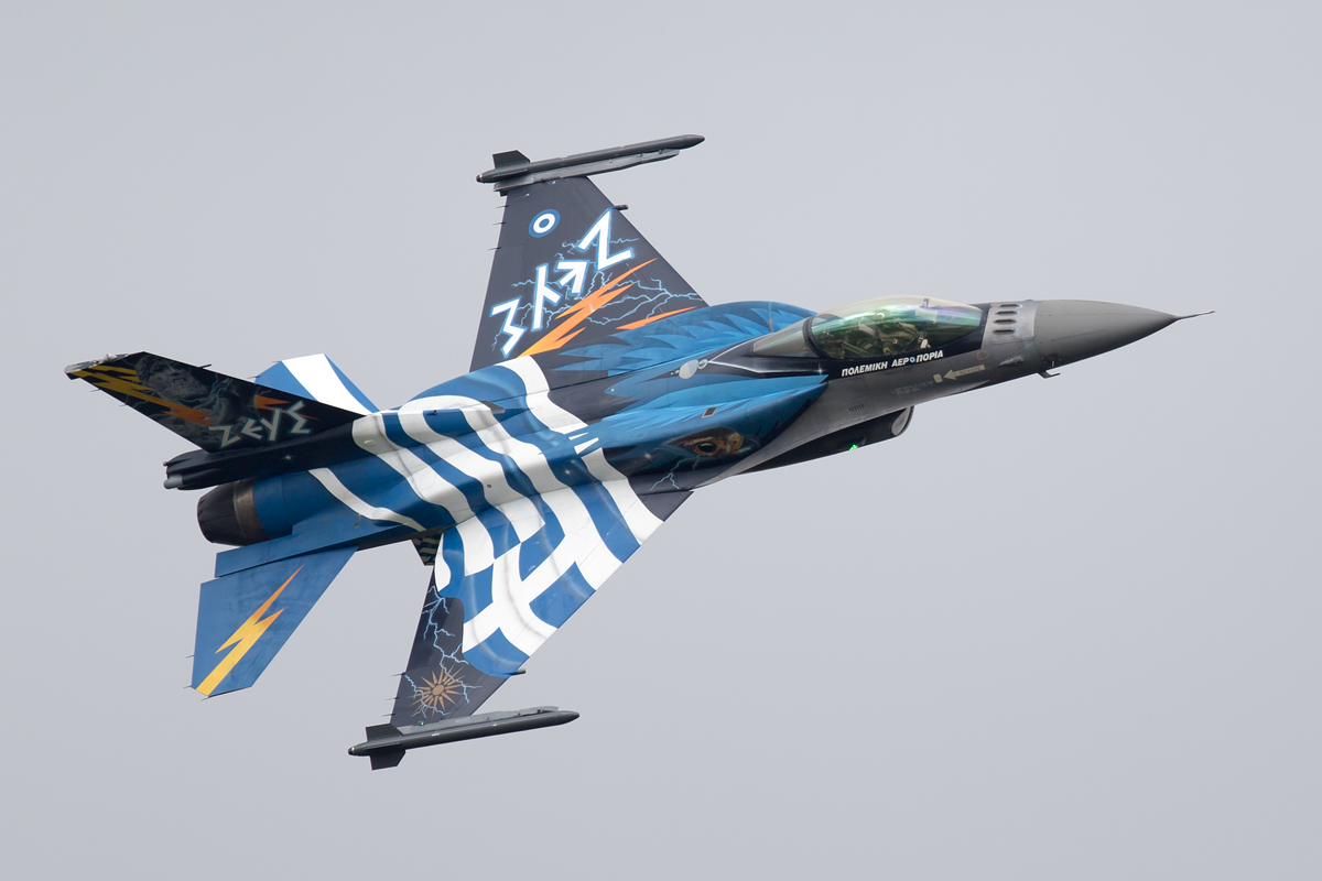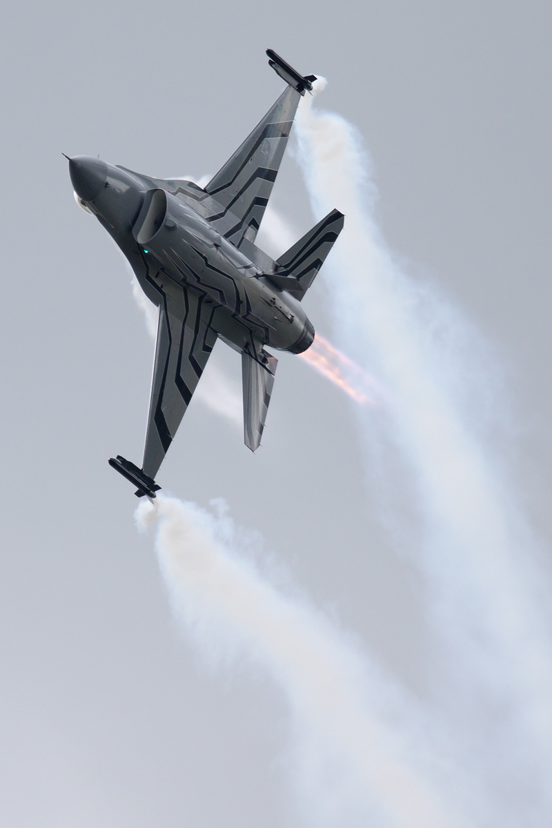 Joining the exotica from the United States Air Force on display was a smorgasbord of fourth-generation fighters, many of which are pushing for expanded export sales in various forms and guises. UK Airshow goers are very familiar with the F-16 – often refered to by its unofficial ‘Viper’ nickname – with the Belgian and Dutch air forces being regular performers at shows across the country in recent years. Whilst the latter is no longer on the display circuit, a new age of F-16 displays is emerging from the Eastern European air arms replacing their Cold War era Soviet aircraft with more modern Western types. Joining the Belgian Air Component F-16A MLU Display which is provided by the 10 Wing at Kleine Brogel were Block 52 F-16C displays from both the Polish and Greek Air Forces. Both of these display jets were fitted with conformal fuel tanks providing some nice photographic variety when compared to the standard, sleeker looking jets. This was also helped by the special paint schemes that they wore: The Polish Viper, from 31. BLT ‘Tiger’ squadron based at Poznan Krzesiny sported very smart low visibility tiger stripe markings, whilst the Greek ‘Zeus’ Viper, from 340/343 Mira at Souda Bay, was presented in its now familiar blue and white mythological themed scheme. Unfortunately, the demo jet was not available on the Saturday, but that did give enthusiasts in the crowd a chance to see and photograph a standard jet in a well-worn paint scheme. However, cream of the F-16 crop for this year was the now legendary Solotürk provided by 141 Filo. Over the weekend, Captain Erhan Günar amazed spectators with the capabilities of the Turkish built F-16C with a display that saw constant G being piled on. Whilst Solotürk was grounded on the Sunday due to low cloud in the morning, the jet taxiing up and down the runway was greatly appreciated.