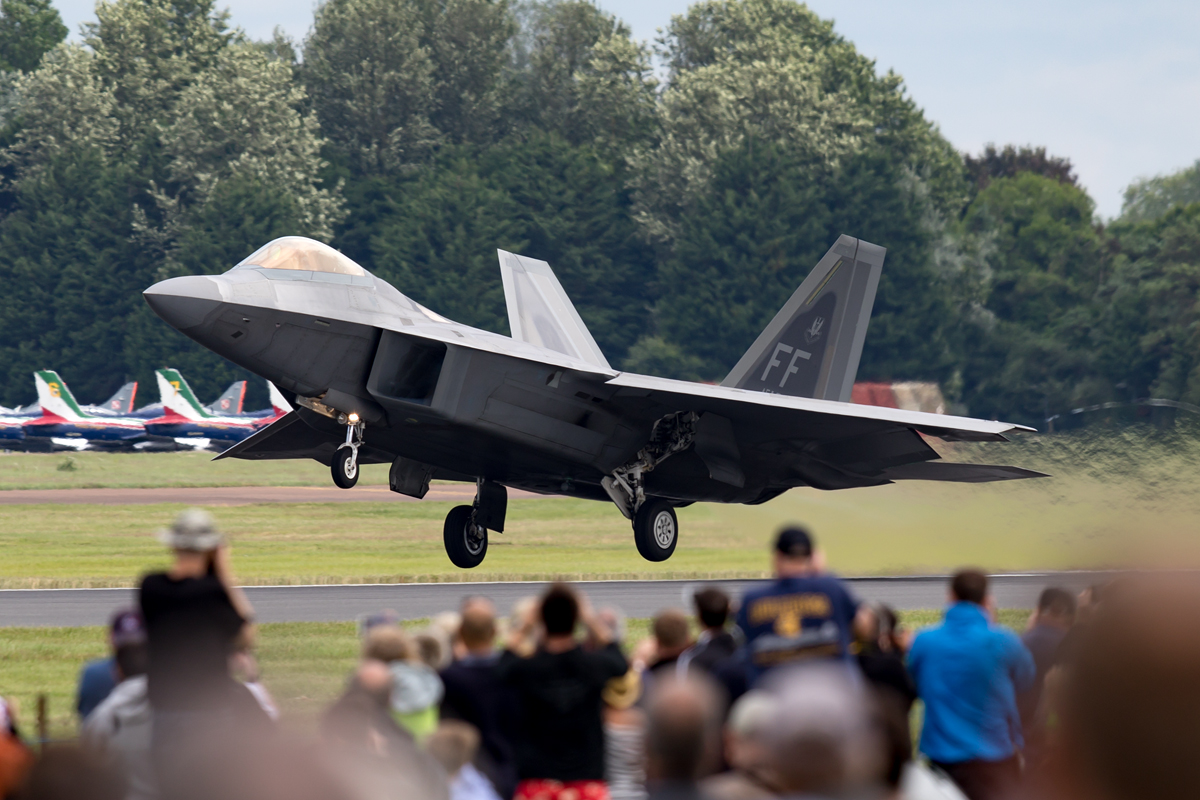 For many, the Royal International Air Tattoo (or RIAT as it is more often referred) is the premier airshow in the world to see military fast jet aeroplanes. There has been an argument that in recent years this has been declining, with frequent complaints from enthusiasts of more ‘filler’ acts during the eight hour flying display. This was certainly not the case in 2016, which featured enough ‘burner action for even the most dedicated of military aviation fans! The undeniable highlights, and first arrivals for the show, were the three Lockheed Martin F-35B Lightning IIs form Marine Corps Air Station Beaufort that arrived at Fairford a week before the show (Ed Note: Have a look at our coverage here – https://www.aeroresource.co.uk/news/f-35-arrives-uk/) and joined later in the week by a further trio of F-35As from Luke Air Force Base (AFB) and pair of F-22 Raptors from the 1st Fighter Wing at Langley AFB. The sight of so many fifth-generation aircraft on the ground at Fairford was something to behold, and the variety and volume of displays over the weekend was much appreciated by the sell out crowd.