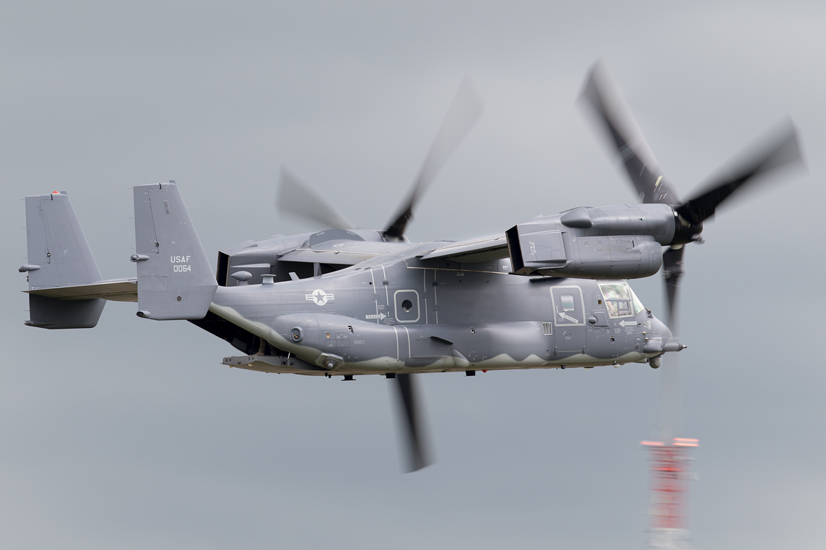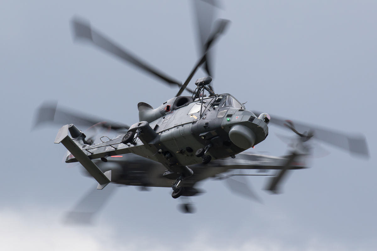 Whilst being well represented in the static, larger aircraft were rather left out of the flying display to make way for the fast jets. Flying the transport aircraft flag was the A400M demo provided by Airbus in one of their company development aircraft. The sheer manoeuvrability of such a large aircraft always bewilders, and the display was littered with ludicrous wingovers and angles of attack. Further demonstration of heavy lift capability was provided by the rotary world with the now familiar RAF Chinook display defying physics with its stomach churning display of agility. Like the A400M, it’s a display that always guarantees to leave you wondering how on earth something that big can by so nimble. Making the jump between rotary and fixed wing was the USAF Bell-Boeing CV-22B Osprey demonstration from the 7th Special Operations Squadron based at RAF Mildenhall. With the imminent closure of Mildenhall and planned relocation of these unique aircraft to mainland Europe, their appearance at RIAT is always appreciated and the display was a good balance between helicopter and fixed wing flight including a number of pleasing topsides in amongst the low, fast passes. Further rotary action came from the Royal Netherlands Air Force Apache which spent a good proportion of its display in attitudes that helicopters shouldn’t be able to attain, and the diminutive German Army Bölkow Bo-105P1, making what was most probably its final display at RIAT prior to the retirement of the type from the German forces. The Royal Navy were also present with the Black Cats display team and their pair of Wildcat’s, one of the aircraft sporting a winch fixed to the starboard side.