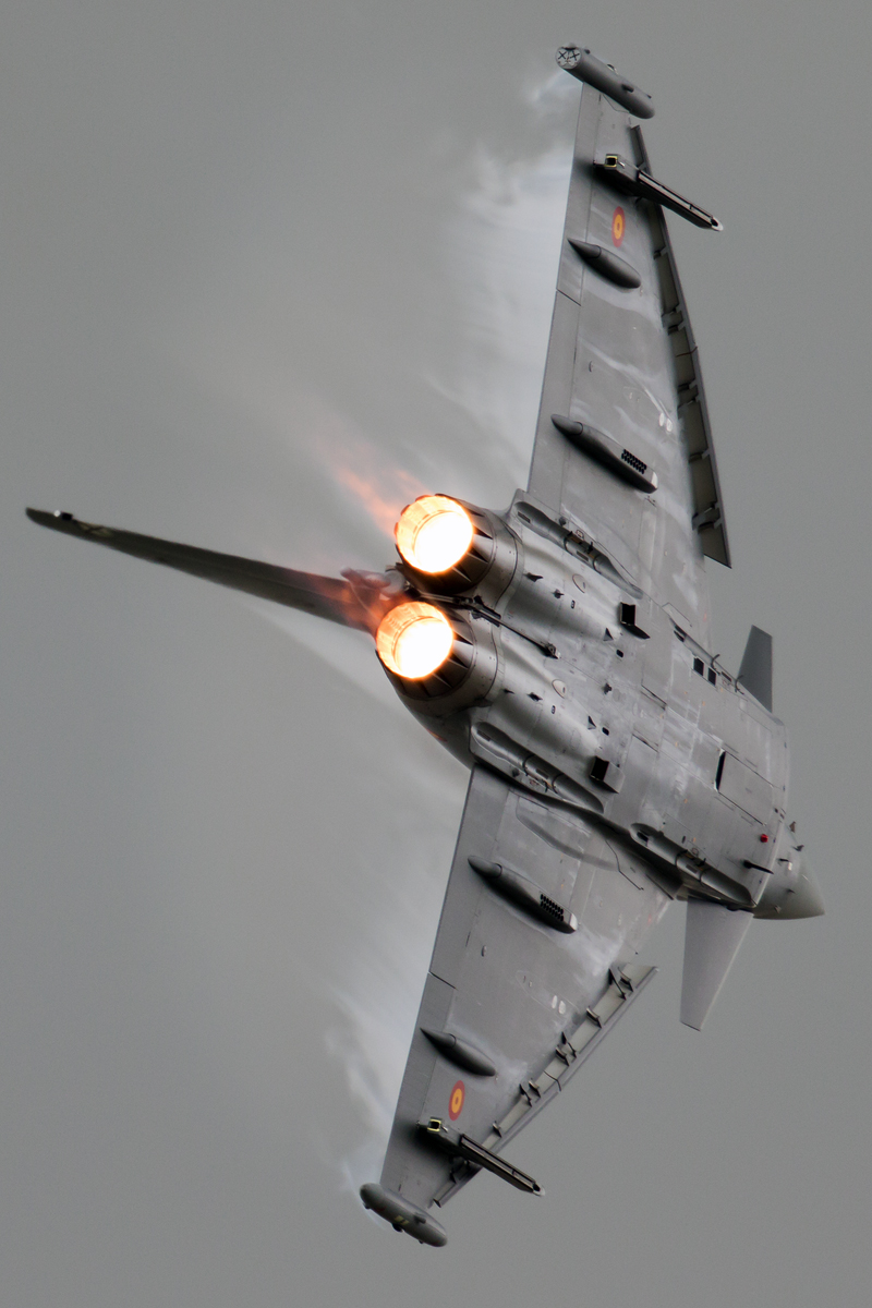 If four F-16 displays weren’t enough, RIAT 2016 also featured four Eurofighter Typhoon displays provided by BAE Systems, the Italian Air Force and Spanish Air Force as well as the ‘home team’ – the standout display from this selection coming from Nat Makepeace in the BAE jet. Nat, who is a BAE Systems test pilot, excellently displayed the offensive capability of the Tranche 3 Typhoon while carrying a Phase 3 Enhancements (P3E) weapons fit featuring four Meteor Beyond Visual Range Air-to-Air Missile (BVRAAMs), six Brimstone 2 low collateral precision strike weapons, two Paveway IV laser guided bombs (LGBs) and two MBDA Advanced Short-Range Air-to-Air Missile (ASRAAMs). The fact that a fully loaded Typhoon could be thrown about in the same way as a clean aircraft was mightily impressive and was recognised with the award of the Steedman Display Sword for best flying demonstration by a UK participant. The standard of all the Typhoon displays was very high in 2016: Flt Lt Mark Long has added yet more improvements to the 2015 offering, bringing plenty of power and noise to what was already a very good display, and the Italian Reparto Sperimentale Volo once again brought a polished routine complemented with a pair of smoke winders – a rarity when it comes to Typhoon displays. It was also very encouraging to see the return of a Spanish Air Force solo fast jet to the RIAT flying display, although the display was sadly hampered by less than ideal weather conditions on both the Saturday and Sunday.