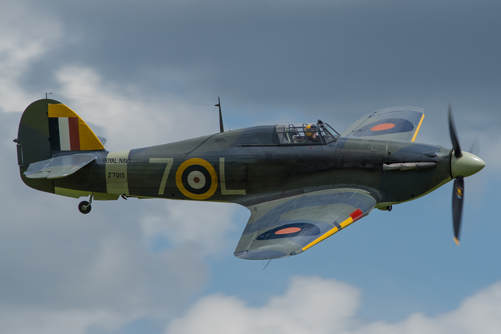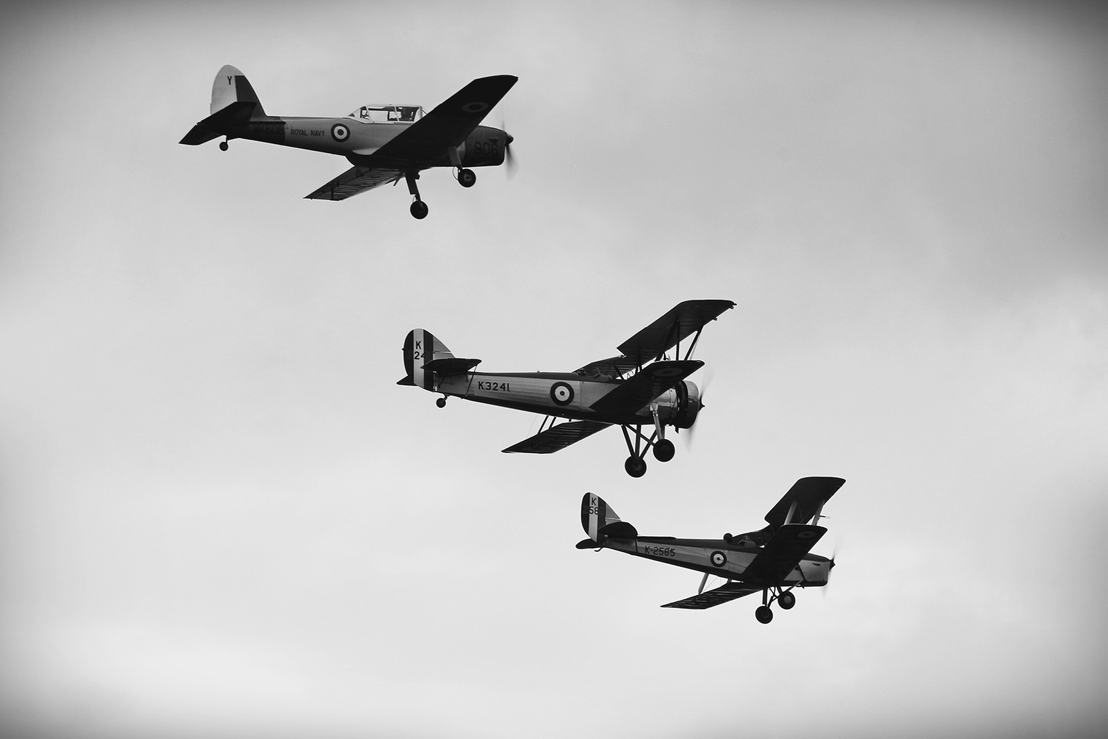The Fly Navy II programme also featured one of the highlights of Fly Navy I – that being the Duxford based Hawker Nimrods of The Fighter Collection and the Historic Aircraft Collection. Flown alongside the delightful Hawker Demon of the Shuttleworth Collection, the trio gave a beautiful set of passes before splitting up for a rambunctious tail-chase. Despite the weather being dark and grey for the for the majority of the day, the three biplanes managed to find some of the day’s best light with some stunning dark clouds in the background giving beautiful contrast to the shiny silver top-sides of Sydney Camm’s lesser known early naval fighter.