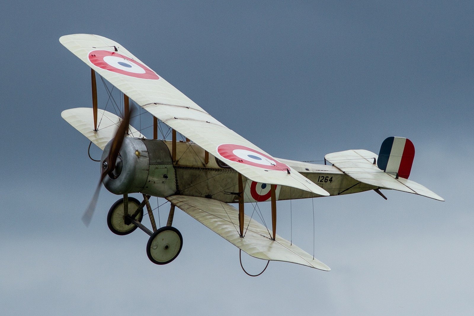 The Old Warden faithful were also treated to a bygone era of aviation with several machines of Great War Vintage taking to the unsettled early-summer sky. The first of which was the beautiful Bristol Scout – a small machine with a hugely poignant and historical background. As a type, the Bristol Scout become the first conventional land based aeroplane to take-off from a moving ship and saw service with the RNAS in the very early, pioneering days of naval aviation. It is however the history of this particular machine (G-FDHB / ‘1264’) that is interesting. Rebuilt to represent the aircraft of Flight Sub-Lieutenant ‘Bunnie’ Bremner, this highly authentic representation includes parts from the original ‘1264’ (the only known remnants of a Scout anywhere in the world), which flew with No 2 Wing in the Eastern Mediterranean at the beginning of World War One. The second biplane to display was a slightly different animal despite coming from the same manufacturer: The much larger Bristol Fighter F2.b gave a typically well-polished display under the gloomy grey skies, staving off the wind with ease when compared to its smaller Bristol built stable mate. A perfect example of the rapid development by companies during the early war years as aerial combat gained strategic importance in the art of war, the ‘BrisFit’ was followed by the Collection’s 1916-built Sopwith Pup – the Navy being the first to fly the type in battle with action over the Somme.