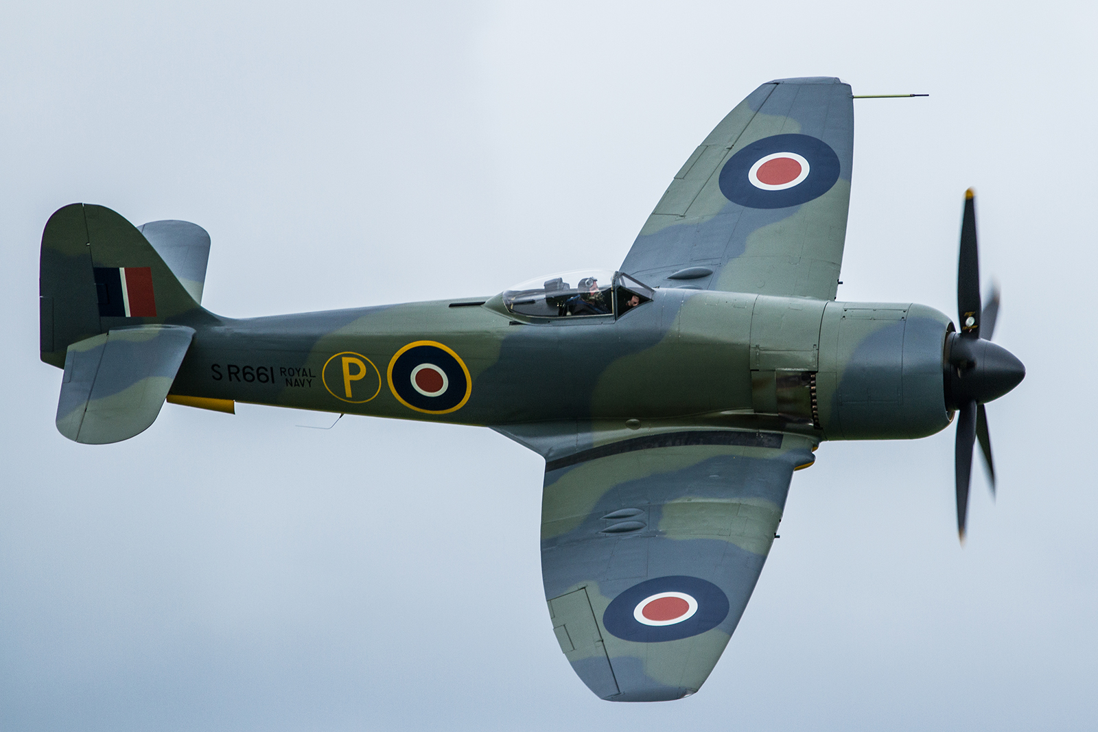 Unlike the Wildcat, the Bearcat was never operated by the Royal Navy but the inclusion of this brutish machine allowed visitors the chance to see the progression of US naval aviation and the Grumman works, the F4F being the manufacturers first monoplane and the F8F being the swansong of the propeller driven era, designed on the advent of the jet age. Grumman would eventually go on to produce one of the most iconic naval fighters of all time, the F-14 Tomcat. Although the concept of the Bearcat was forged during the Second World War, it was too late to see active service. This was a similar story to the machine that was, for many, the star of the flying display: The beautiful Hawker Fury.