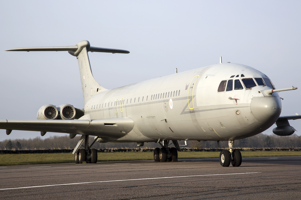 Like TriStar ZD951, VC-10 ZD241 is the last example of its type – the four other K.4 models having been scrapped between 2004 and 2011. First flown in February 1968 as G-ASCM for BOAC (British Overseas Airways Corporation), ZD241 was delivered to the Royal Air Force in 1995 after conversion to K.4 standard at Filton, Bristol. ZD241 spent the majority of its final year of service on detachment to the Falklands with 1312 Flight, returning to the UK shortly before retirement in March 2013. It had seemed for a while that the longest serving VC-10 in the RAF, C.1K XR808 (better known as ‘BOB’) would be preserved at Bruntingthorpe after plans to fly it to the RAF Museum at Cosford changed – but eventually this aircraft was dismantled and transported by road to Cosford. ZD241 is now one of two complete VC-10s remaining at Bruntingthorpe and the only one to retain power, after being purchased and refitted with four Rolls Royce Conways. After the first engine run on March 31, 2014, the restored aircraft was unveiled publically at the Cold War Jets Day in May of that year.