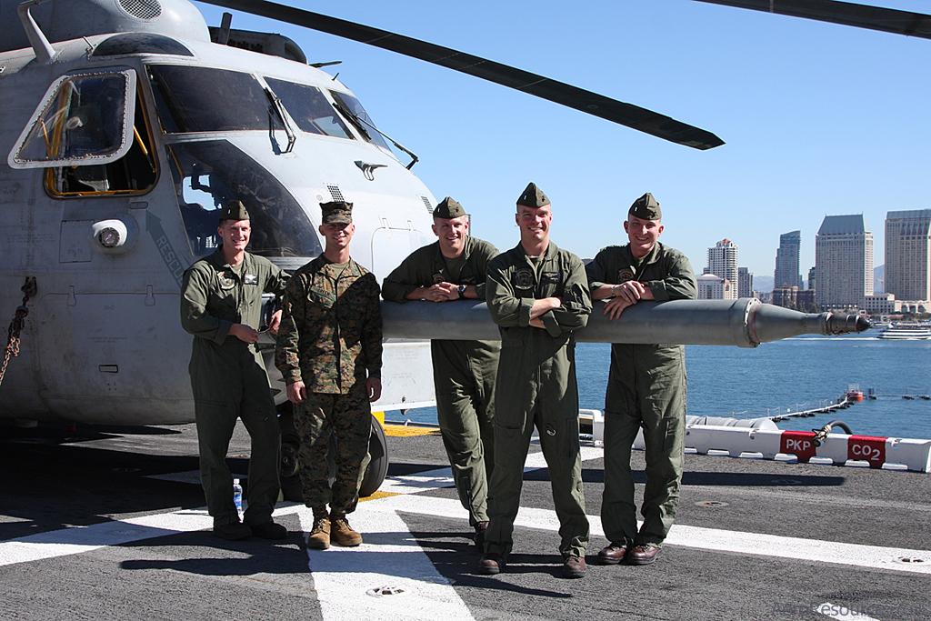 Berthed next to CVN-74 was a Tarawa-class amphibious assault ship, the USS Peleliu (LHA-5). Named after the battle of Peleliu during World War II, the ship entered service in 1980. Although, not quite as long as the John C Stennis at only 250 meters, the Peleliu stood as high as the carrier. The ship’s propulsion is carried out by steam turbine and it can travel at 24 knots. Inside this ship seemed a very different place to the carrier we had just visited, no powered ramps to move assets around, just long steep slopes and wide open areas for the movement of amphibious landing craft. On deck we were greeted by the sight of Marine Corps helicopters and crew who were only to pleased to show members of the public around each helicopter.
