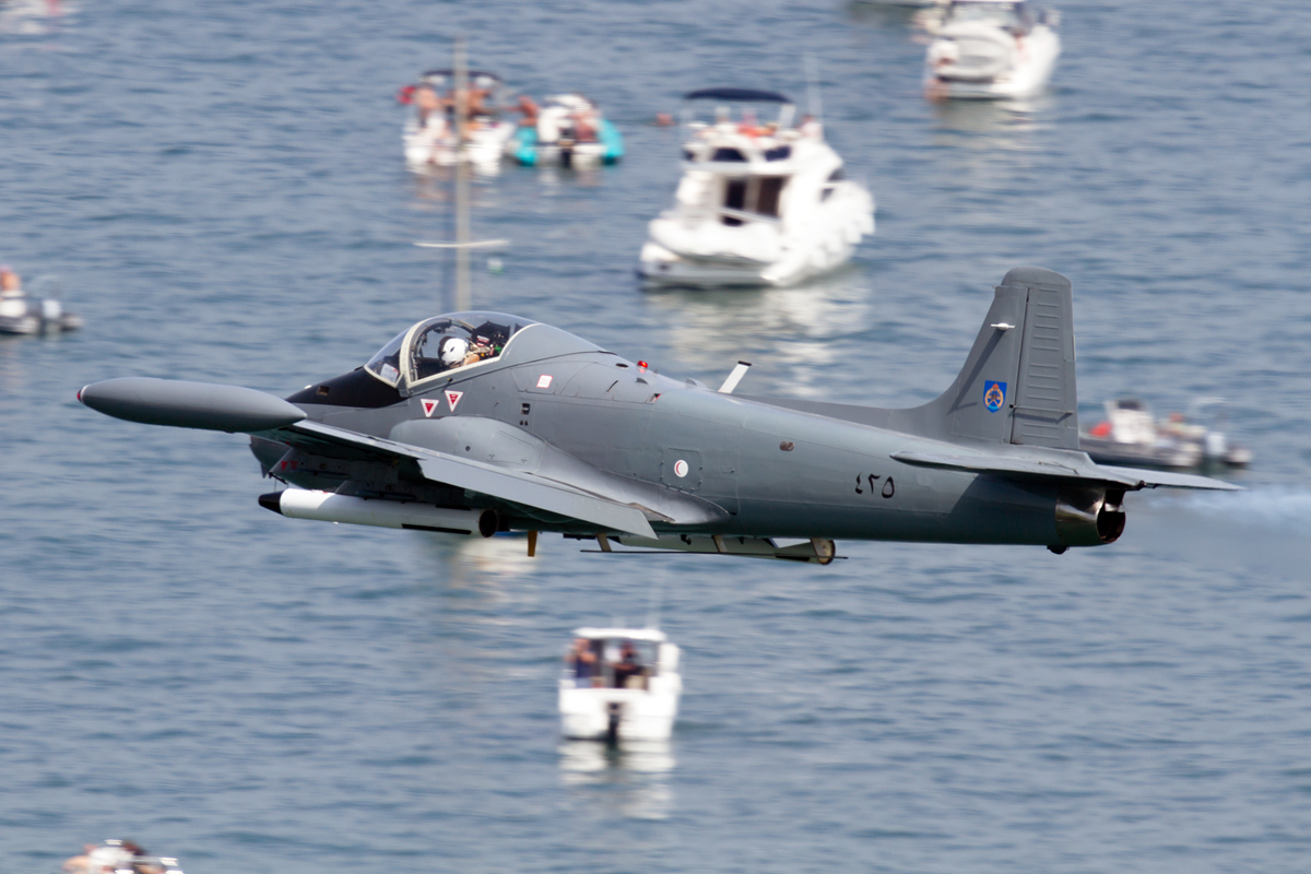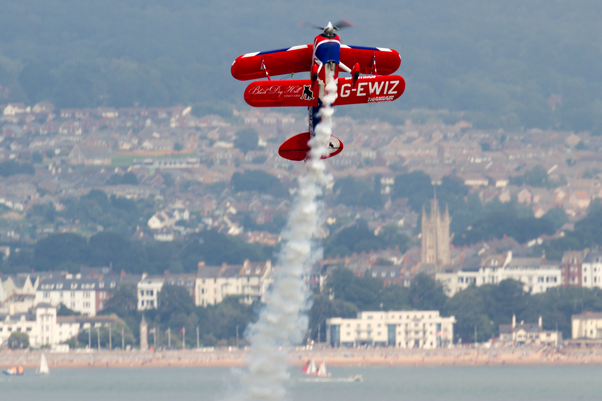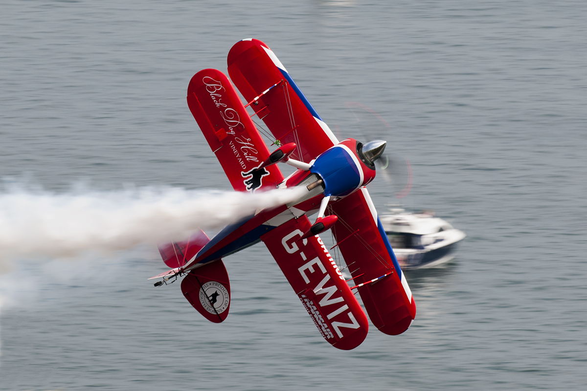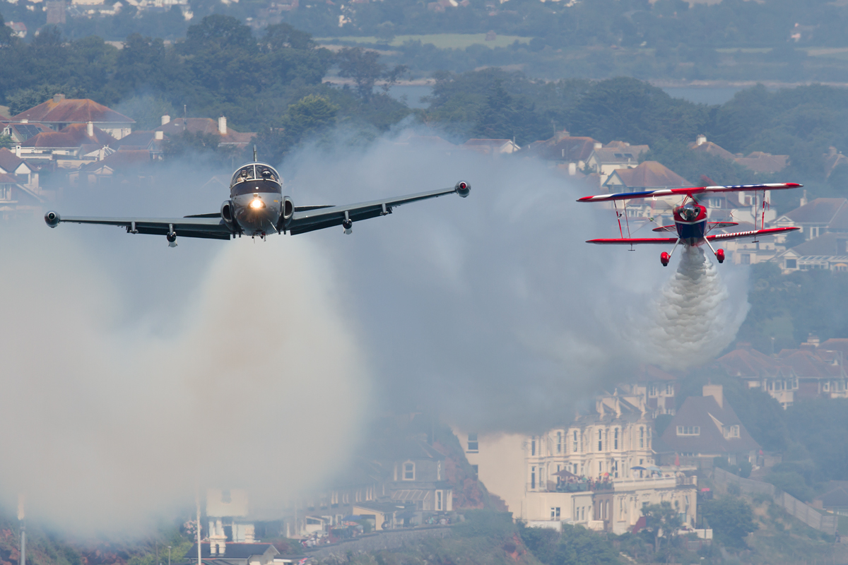 An interesting pairing appeared with the BAC Strikemaster flown by Mark Petrie alongside Rich Goodwin in his Pitts Muscle Biplane G-EWIZ. Such an unlikely pairing worked wonderfully with three close formation passes showing the unique attributes of both aircraft, which also went on to undertake their individual displays – the Strikemaster prior to and the Pitts after their formation display. Goodwin’s trademark sideways entry looked all the more impressive over the sea, and he finished his display in similar fashion to an appreciative crowd.