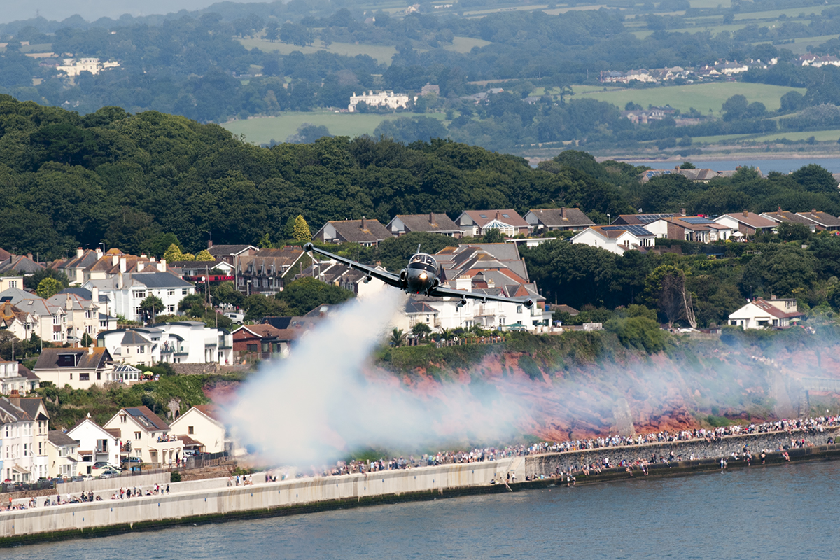 This year’s new RAF Hawk T2 Role Demo Team had the honour of opening the show, running in low and hard from Exmouth they put on a spirited and energetic display. Despite the lack of pyros due to performing over the sea, the Dawlish Coast seemed to enhance the display as the Hawks swooped and frolicked in unison.