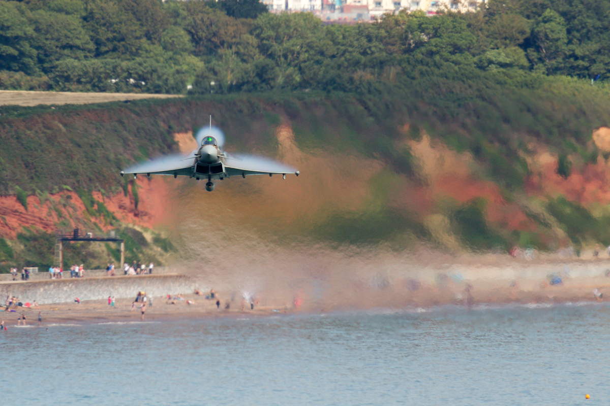 You could feel the anticipation of the crowd awaiting the Vulcan display and, with the sight of her holding south of Exmouth, people stood and pointed as the expectation grew. As XH558 ran in to start her display, she accelerated and the unique and spine tingling howl kicked in reverberating around the Dawlish coastline. As she pulled up and powered past Smugglers Hill you felt that this was going to be a very special display. However, the rest of the display appeared distant, high and somewhat subdued. Given that the Vulcan had been holding at Shoreham in the aftermath of the tragic Hunter crash, you can understand why and much respect must be given to the crew for continuing with the booked displays after their cancelled Shoreham slot.