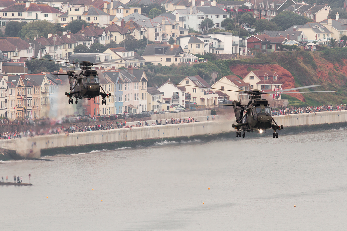 The Royal Navy kept the spotlight as the Black Cats Display Team started their display soon after. Having now said goodbye to their trusty Lynx HAS3s and HMA8s, the Black Cats now display in their replacement, the AgustaWestland Wildcat HMA2. The aircraft are more powerful and capable than the Lynx and are without doubt more photogenic and pleasing to the eye. The display features most of the well-known and loved manoeuvres while the bright white anti-collision light certainly draws your attention. In their natural habitat over the sea, the pair of Wildcats waltzed and wing overed their way through the south Devon skies as the crowds watched on with glee.