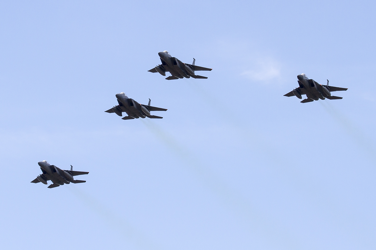 The flying display was opened by a rare flypast from the US Airforce based at RAF Lakenheath. Originally scheduled to be a pair of F-15E’s it was changed just prior to the event to a four ship flypast of F-15C’s from the 493rd Squadron. The high, single pass was certainly a rare sight but was sadly over just as quick as it had started.