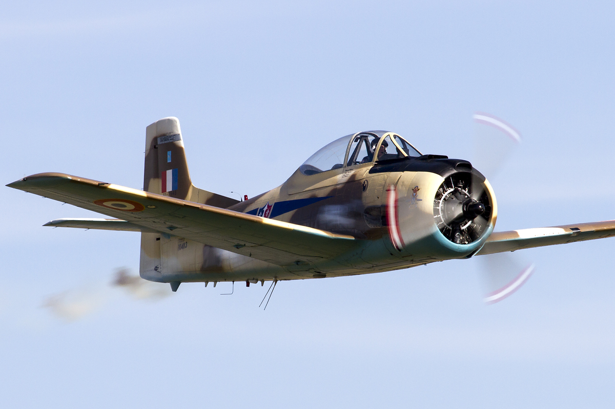 The Flying Legends show this year saw the first flight of SNAFU – the Fighter Collections newly restored P-47 Thunderbolt. Flying in formation with P-51D Mustang “Miss Velma” really showed off the sized of the Thunderbolt which was being publicly displayed for only the second time. TFC also displayed their Grumman Bearcat and Pearl Harbour surviving Curtiss Warhawk both of which were displayed with typically polished routines. Radial Revelations also displayed their T-28 Fennec with its distinctive paint scheme.