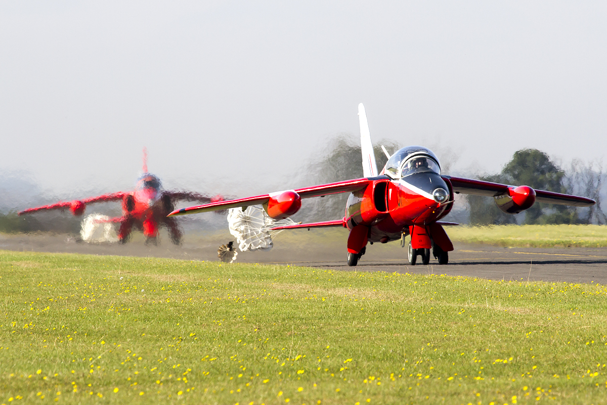 With the Red Arrows only displaying on the Sunday, there were only two display teams on the schedule for the Saturday. The six Yak-50’s of the Aerostars team, in their differing colour schemes, displayed a very slick routine despite one of their aircraft being out of service and having to use a replacement with an inferior smoke system which was most evident during the heart manoeuvre where only one aircraft had a working system. The other display team were the Gnat pair who are rarely seen at many shows. The two aircraft, one in flight training school colours and the other in an early red arrows scheme, showed off the small jets very well and the parachute brake landing gave those at the tank museum end some different photo opportunities. With a third jet being readied to join the team in the near future this is certainly a display to keep an eye out for.