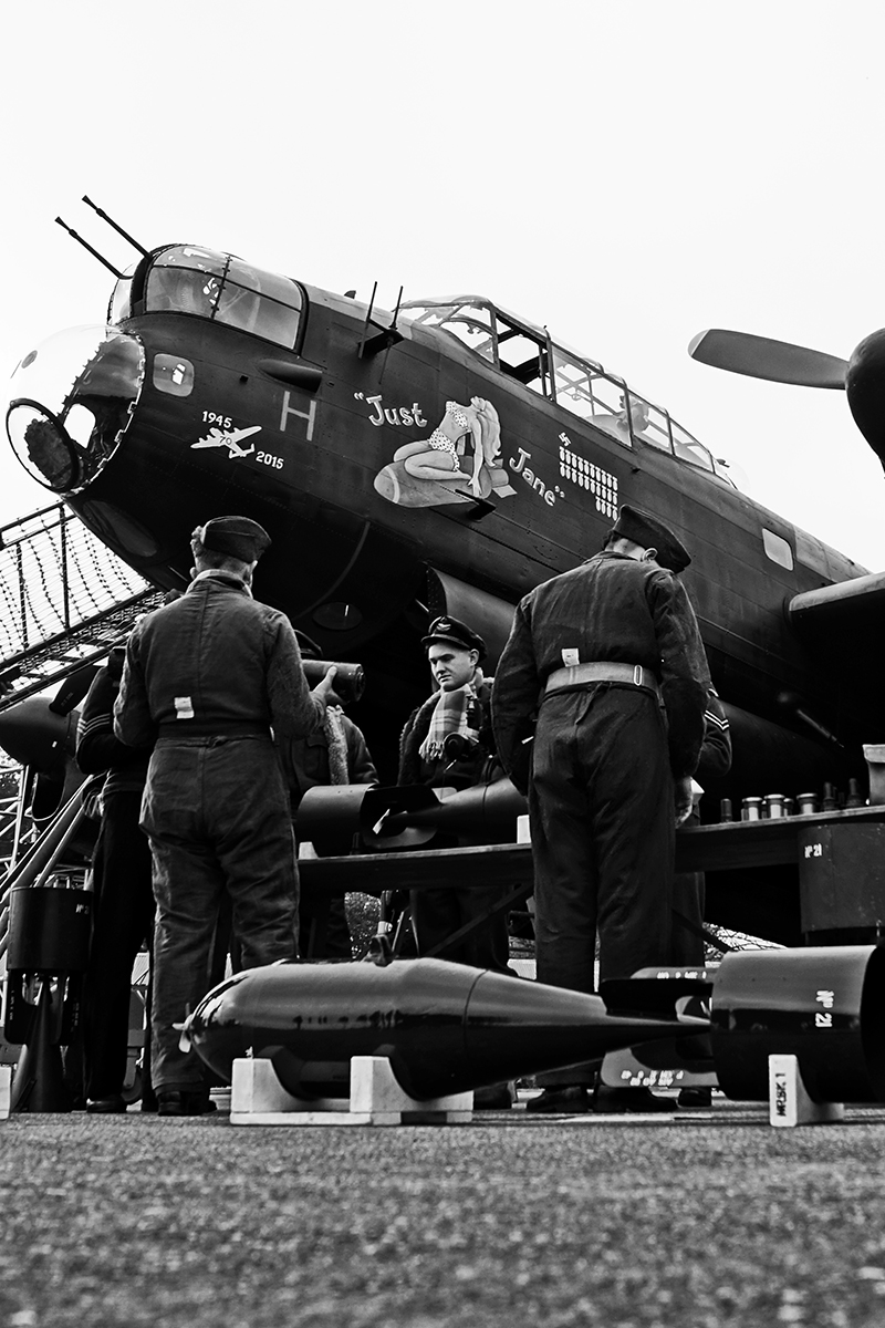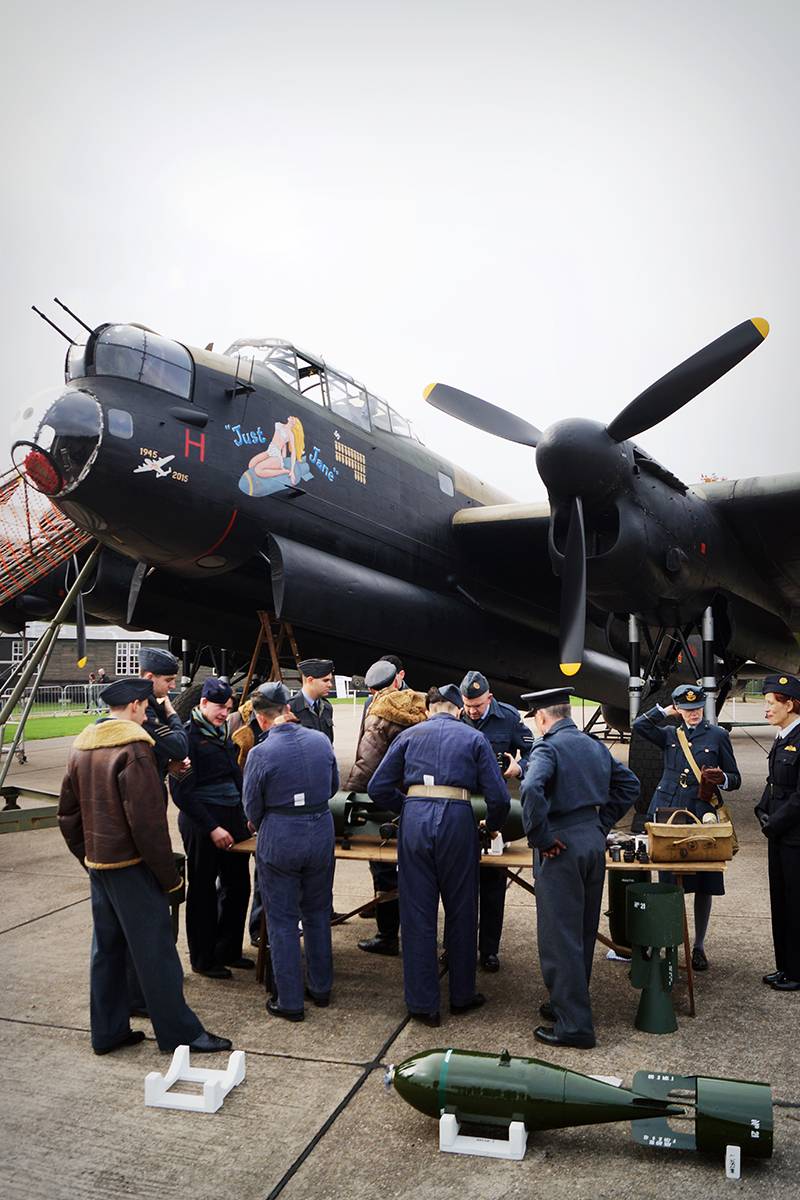 Normally held on the first Saturday of November, this year’s event fell on the last day of October and, like previous years, saw the culmination of the work and effort by all at the LAHC with ‘Just Jane’ performing three ‘runs’ – including one under the cover of darkness – followed by a spectacular fireworks finale. Sat on the dispersal, there was a constant hive of activity around the aircraft including a number of period dressed re-enactors who who happy to pose and chat imparting their unique knowledge. The added atmosphere as they stood with the aircraft and related material was a nice touch. Given the tight confines of the aircraft’s dispersal, the crowds were able to get up close and personal with the action including spying the machines 70th Anniversary marks on the nose signifying the fact that, as the last aircraft left East Kirkby for its final act of war, ‘Just Jane’ was just coming off the production line.