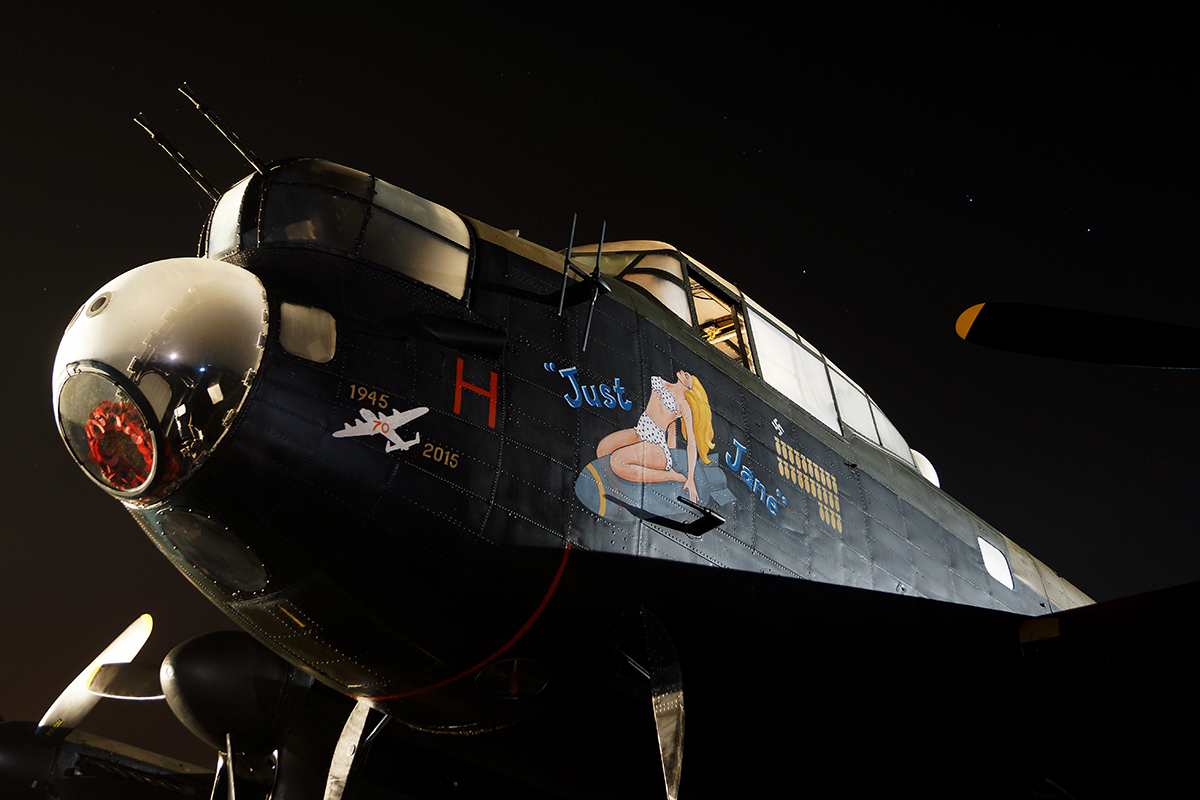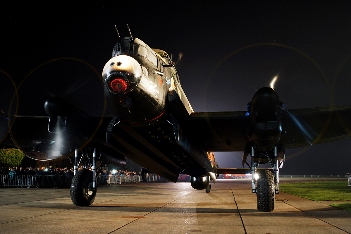 Emerging from the dark, the Lancaster stopped on the way back to her dispersal to allow the crowds to admire this creature of war and the photographers enough time to fire off a number of long exposures. After a last burst of power, ‘Just Jane’ moved slowly to her final spot for the night for what to many is the highlight of the night run – each of the four Merlins being taken up to 2,000rpm. The best way to describe this sheer spectacle of 1940’s power? A spine tingling, ground shaking, chest thumping heavenly growl!