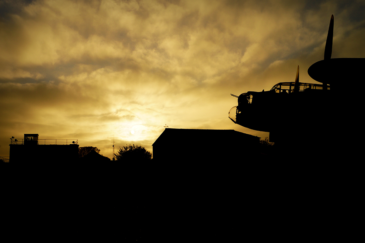 Following the same pattern as the first run, the aircraft performed another faultless second taxi run in what turned out to be the better light of the day before heading back to the dispersal in preparation for the highlight – the night run. Sitting dormant on its parking spot, ‘Just Jane’ made a fine silhouette against the dark brooding skies of Bomber County as the last amber rays of light pierced the sky.