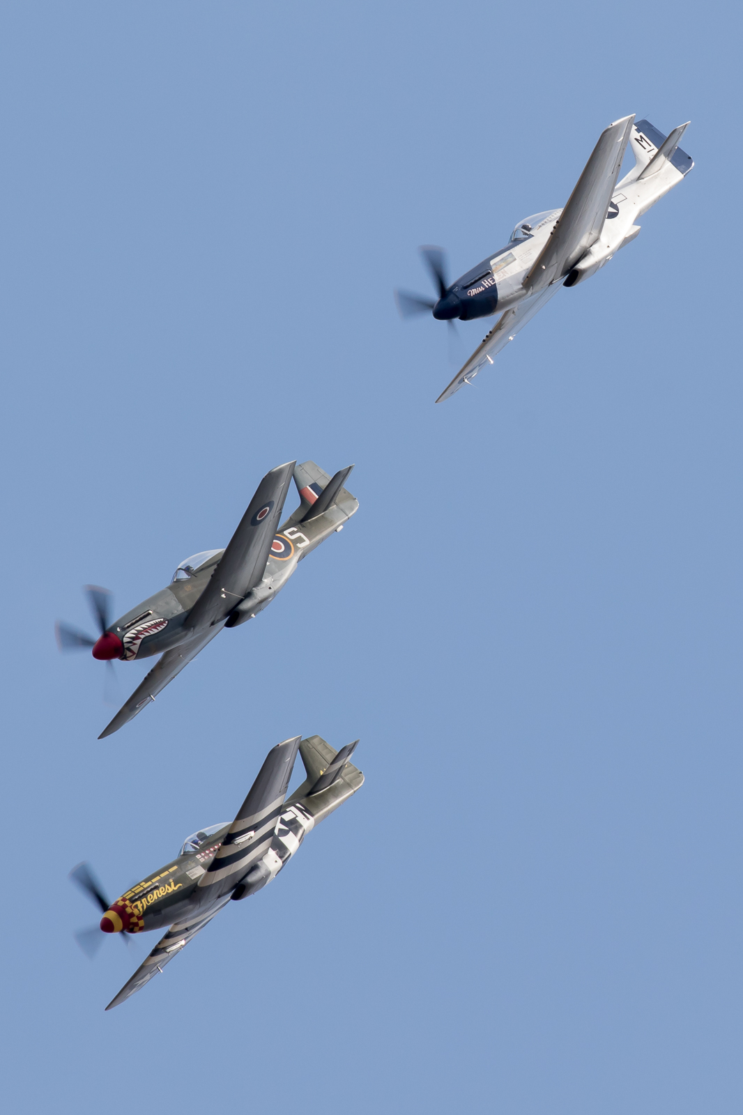 TF-51D Mustang ‘Miss Velma’ G-TFSI | P-51D Mustang ‘The Shark’ G-SHWN | P-51D Mustang ‘Miss Helen’ G-BIXL |