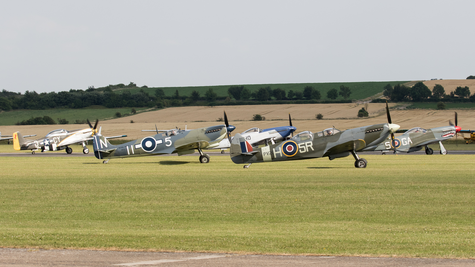 Supermarine Spitfire HF MkIX RR232 ‘City of Exeter’ G-BRSF | Supermarine Spitfire Mk IXb MH434 G-ASJV | Supermarine Spitfire LFVb EP120 G-LFVB |