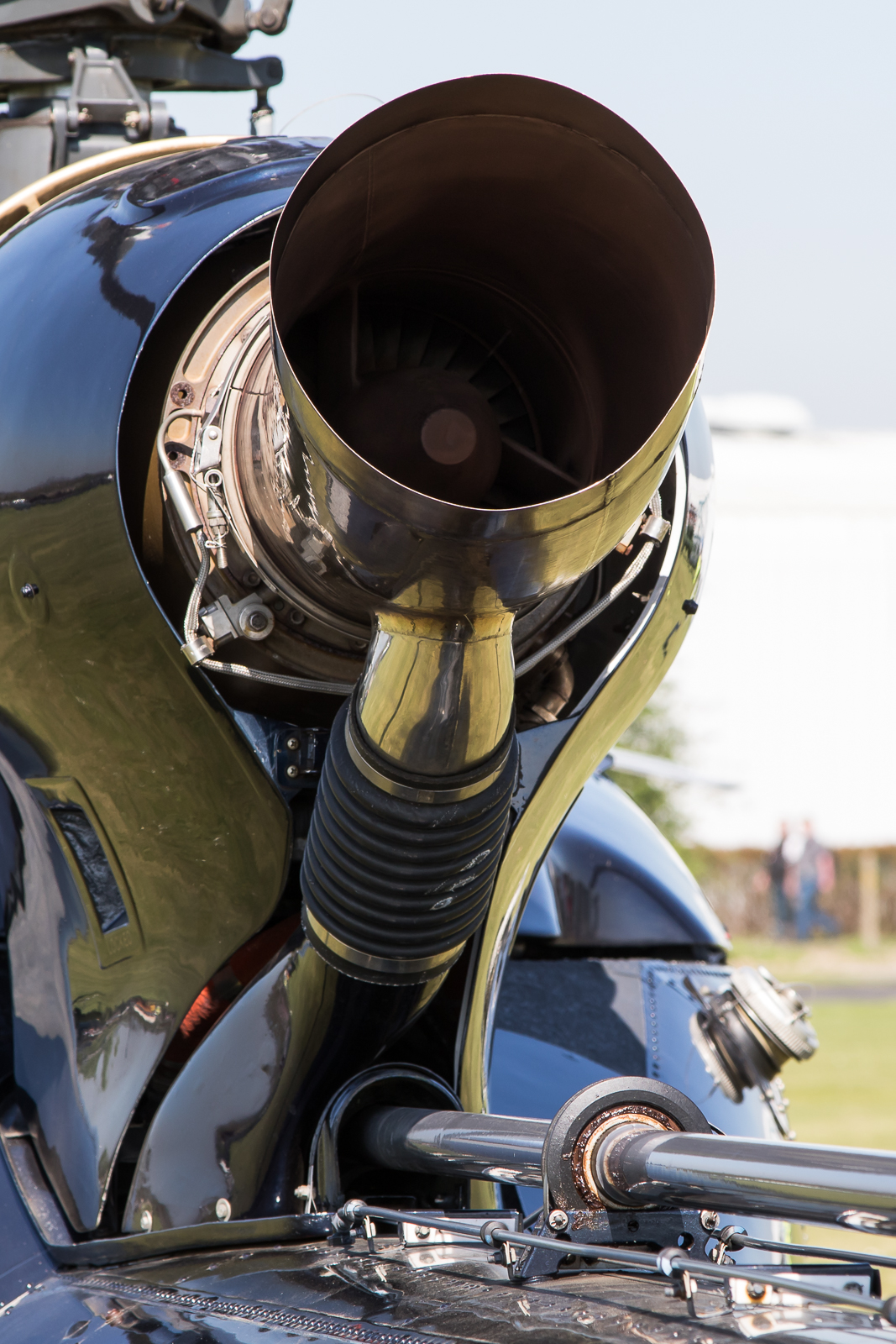 Another airframe with links to the Sharks is G-CBGZ, ex-ZB646. Although now in an all over metallic graphite color, the tail wears the teams markings along with 60th anniversary marks in honour of 705’s diamond anniversary in 1996. One of the more colourful examples on show G-CTFS, ex-XW857 certainly stood out in a blue scheme with silver and green striping. The final HT.2 on display was also that of the final construction number of the type – G-SIVJ, ex-ZB649 with the owner of this particular aircraft opening the doors and engine panels allowing an up-close look at the gearbox and the heart of the type, its Turbomeca Astazou IIIN2 power plant.