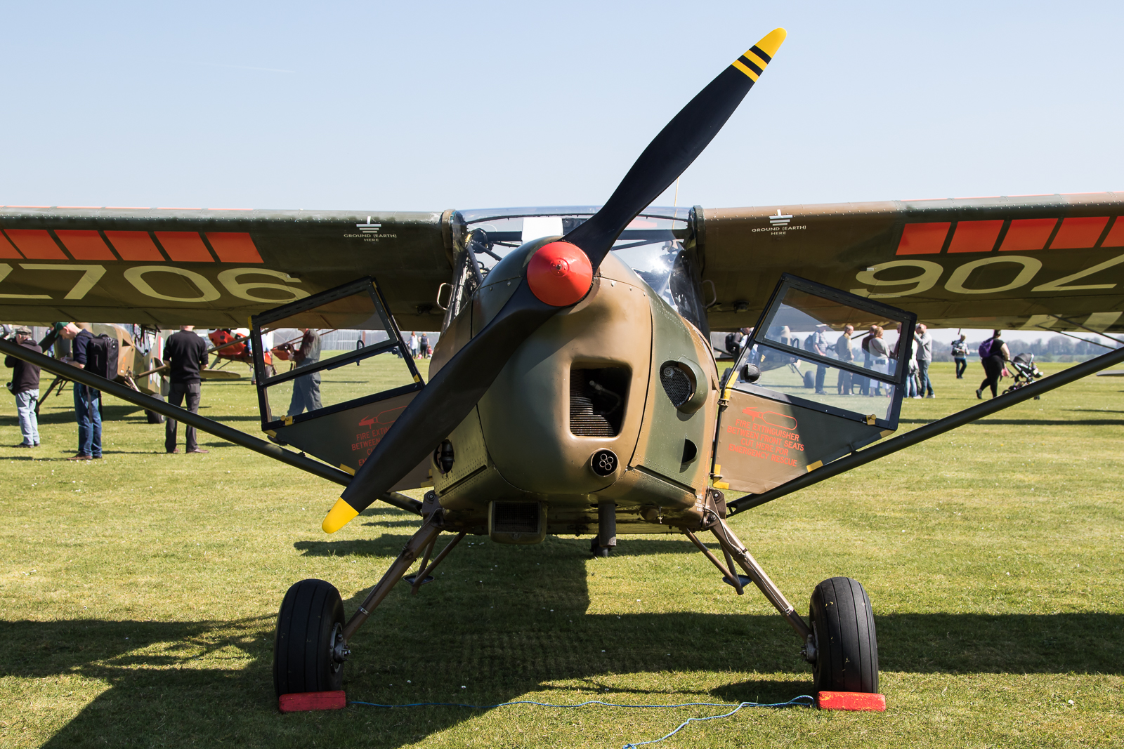 Completing the days visitors were a large number of fixed wing aircraft that were also used in the observation role and all part of the Auster family. Nine examples gathered behind the rotary types including AOP III G-BUDL/NX534, three Mark V’s – G-AKSY/TJ534, G-ANIE/TW467 and G-APAF/TW511 – along with a quartet of AOP.9’s G-BJXR/XR267. G-BKVK/WZ662, G-BURR/WZ706 and G-CEHR/XP241. The final aircraft was G-AWSW/XW635 – a Beagle Husky that was a development of the Auster Alpha – which was the only example of the type to serve within the RAF with No.5 AEF after being won in a raffle!