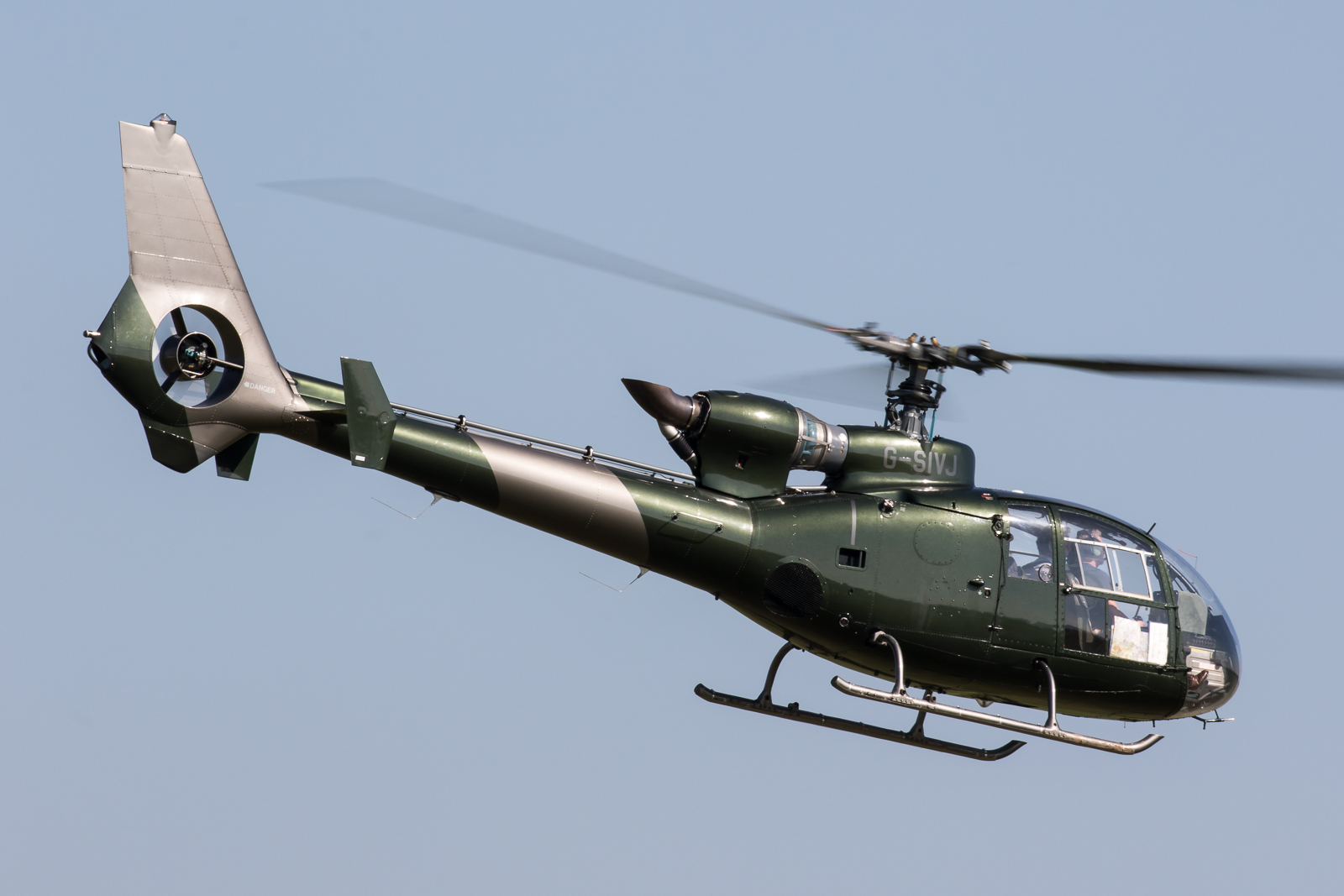 Although initially planned for use within the AAC, other services soon acquired their own Gazelle variants although mainly for non-front line duties. The Royal Navy and RAF both utilised the Gazelle in a training role (variants WA.341C/HT.2 and WA.341D/HT.3 respectively) with the latter also utilising a version for communications and VIP transport (WA.341E/HCC.4). Once these left service, many found their way in to civilian hands and a number of these examples were present with some still clearly showing their miltary heritage.