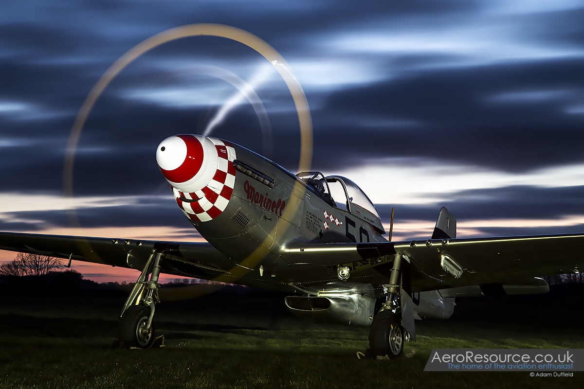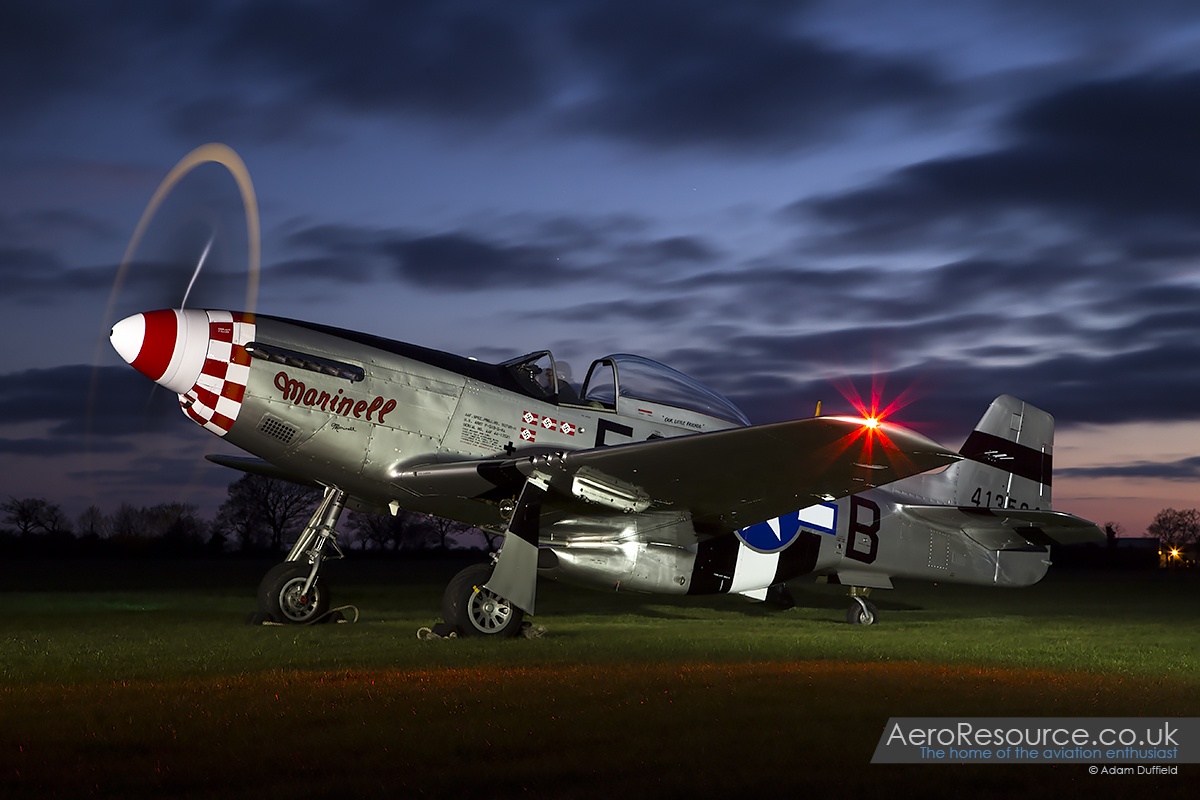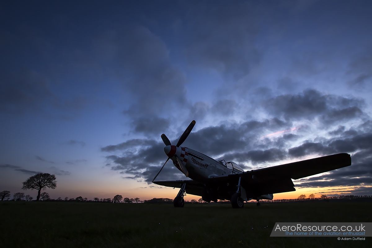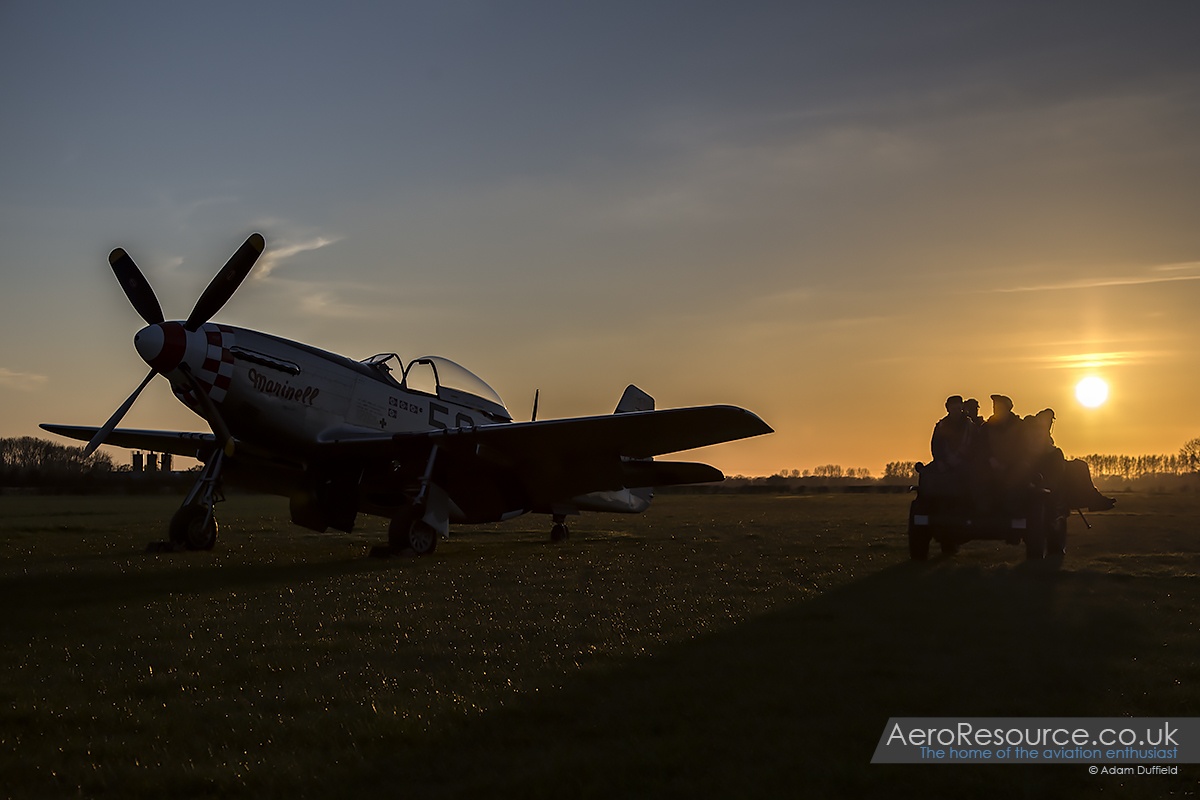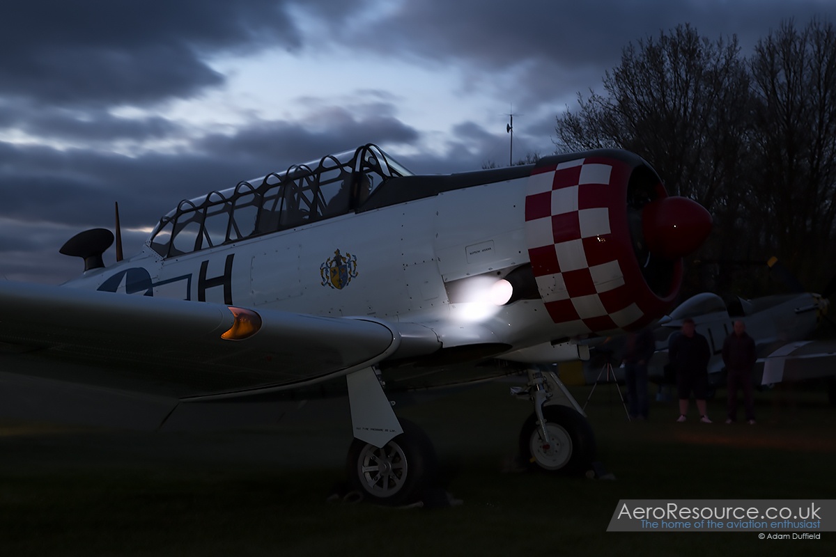 After a break for a sumptuous tea of jacket potatoes and chilli which allowed time for a reposition of ‘Marinell’ and the Harvard, it was soon time for the sun (which had been out all afternoon) to set and preparation for the two planned ground runs to start. The Harvard went first and, at the hands of Maurice, started up and ran for a good 5-10 minutes which included a wonderful display of exhaust flames as the power was applied – something not normally seen. ‘Marinell’ was next to run and, with the addition of two small LED lighting panels giving some much needed lighting to the airframe, put on just as good a performance popping blue flames from individual exhaust pipes as it went. Being so close to both aircraft whilst running was an experience to behold especially with he rarity of an after dark run – something that has only occurred once before with the Mustang.