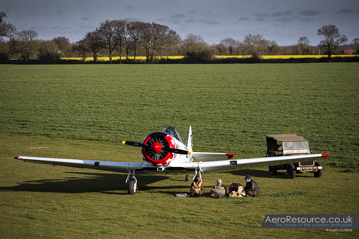 With a total of six hours of planned shooting, it was clear that the gathered group of 40 photographers (limited by the organisers) would have plenty of time to capture any required shots. The team at Hardwick had arrived earlier in the day and had spread the aircraft around the grass landing strip with the Mustang pair in front of the main hangar and Auster, Harvard and Stearman slightly further away. With so much space to play with, mixed with lovely countryside backdrops, there was plenty of room for the numerous military vehicles in attendance to be spread around.