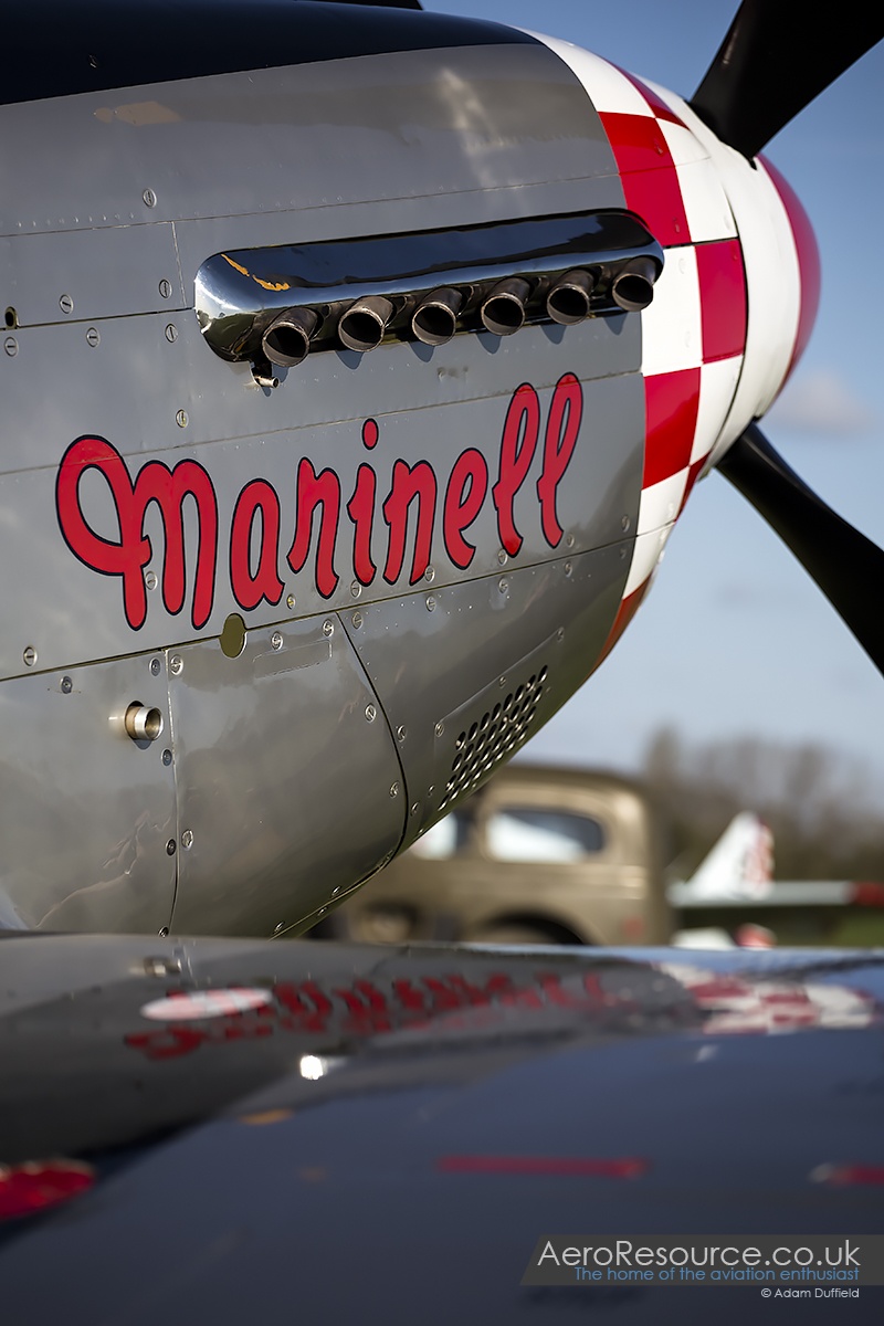 Unlike its stablemate, ‘Marinell’ has been restored to the scheme the aircraft flew with during service. Joining the 504th Fighter Squadron, 339th Fighter Group based at Fowlmere, Cambridgeshire the aircraft served for just over two months before it was lost in a forced landing north of Paris resulting in the death of pilot Lt Myer R Winkelman. The wreckage of the aircraft was acquired by the collection in 1998 and after significant restoration returned to the skies in 2008 once again resplendent in its wartime scheme.