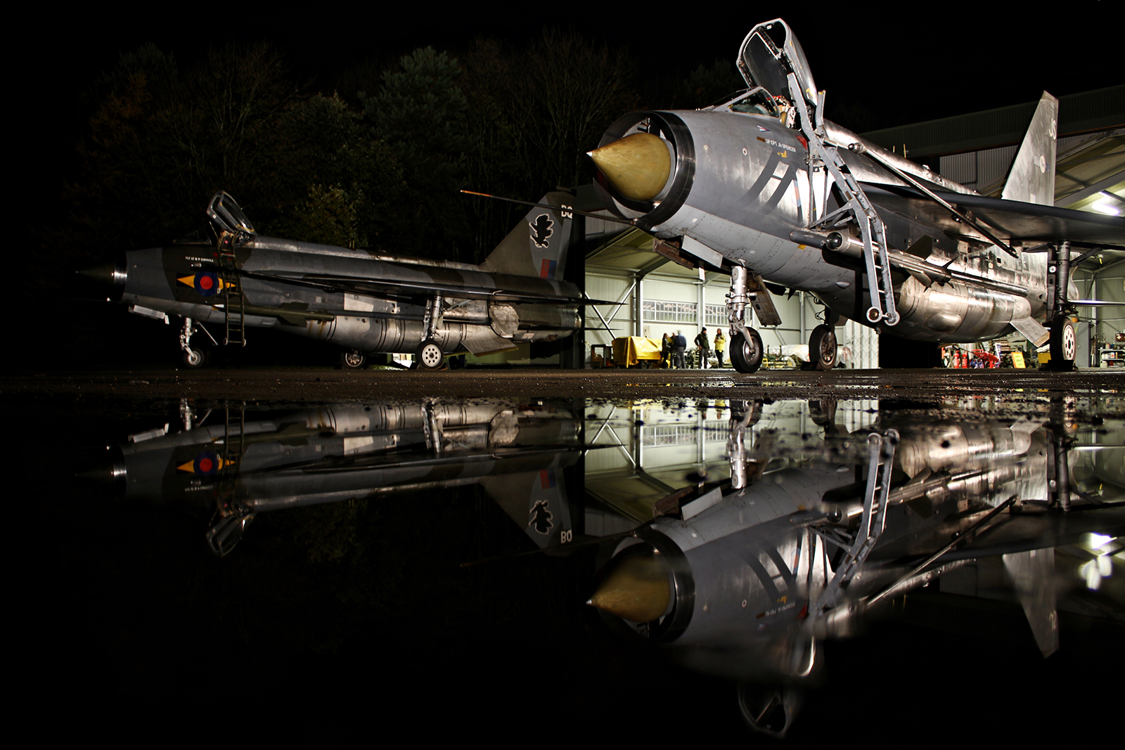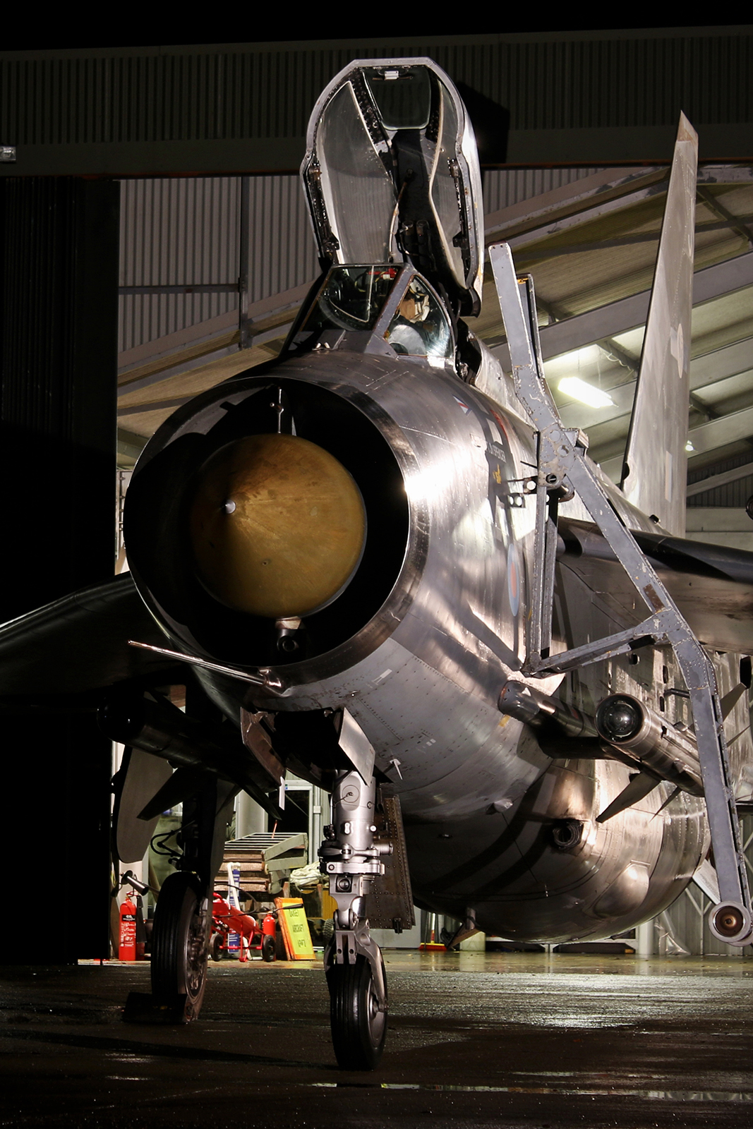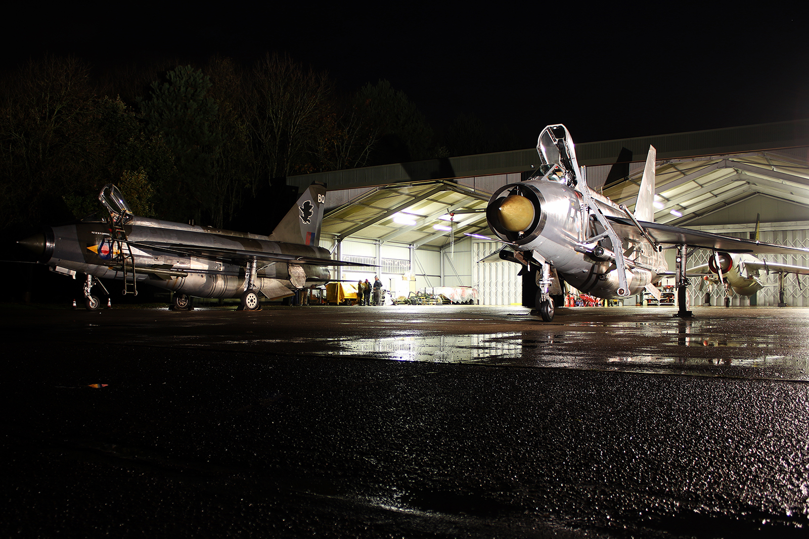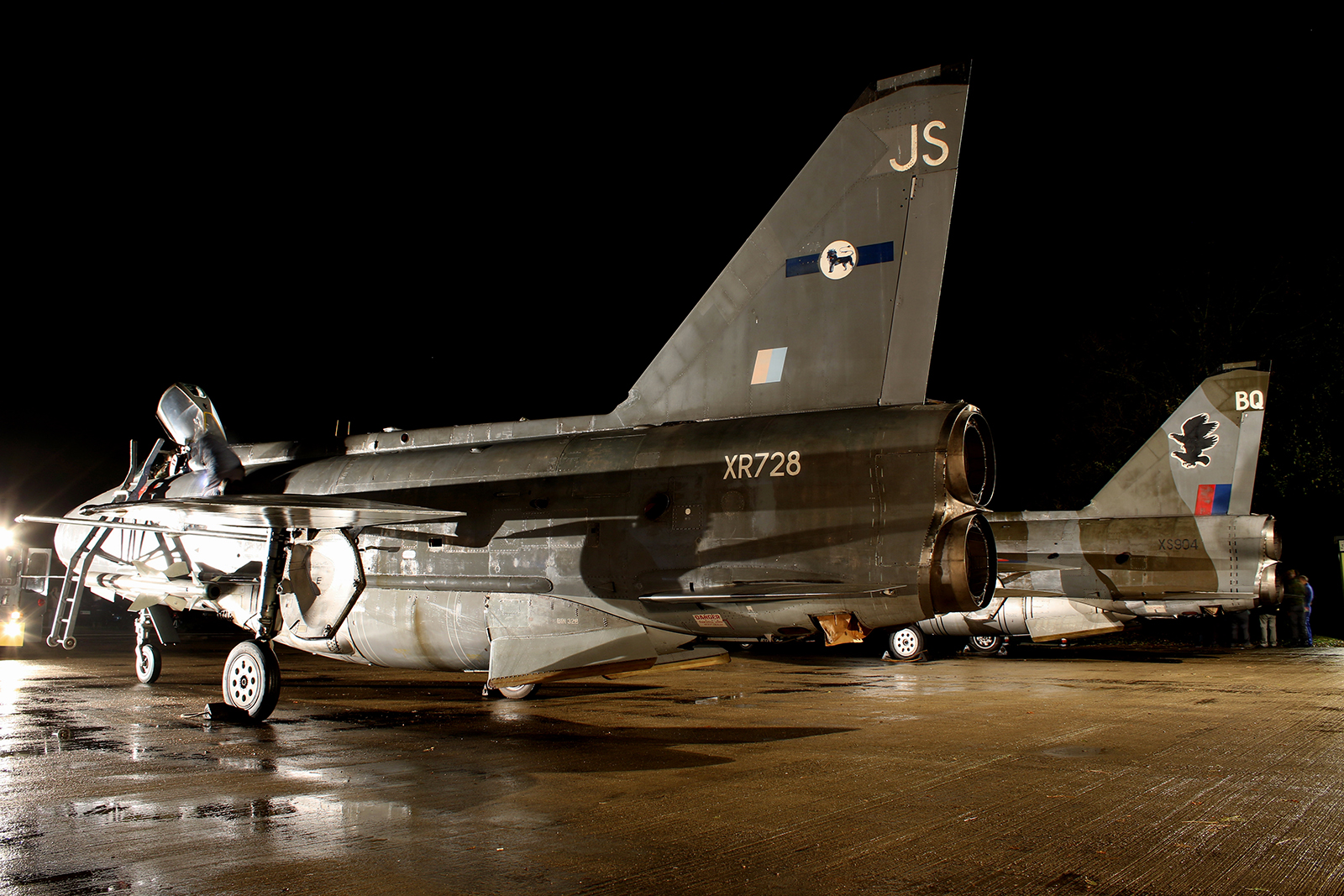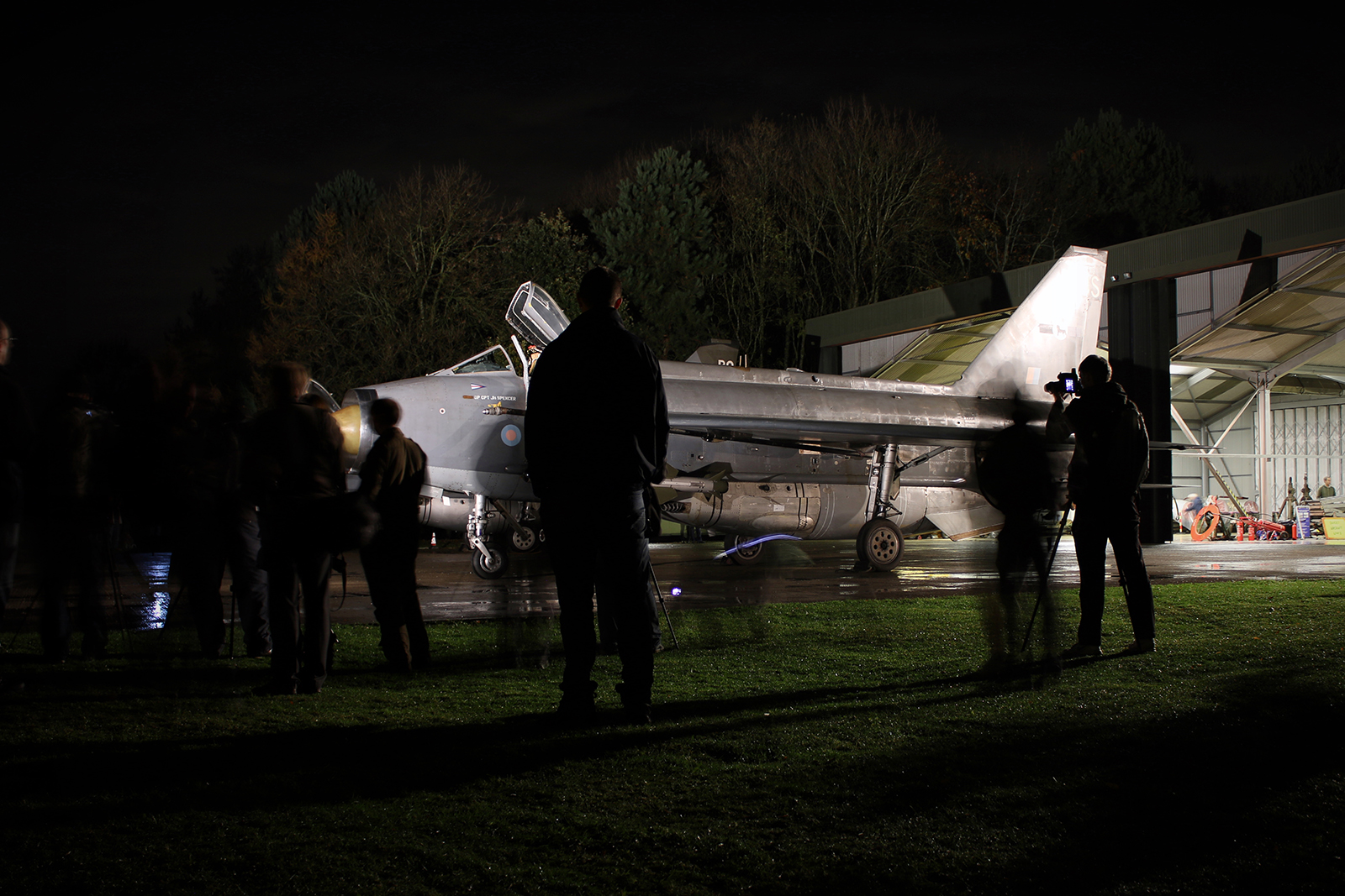 With both aircraft now cooling down and back in the hands of the ground crew it was again the turn of XR713 to take center stage for the nightshoot. Arriving at the airfield last year from the now closed RAF Leuchars, XR713 is just one of five complete F.3s still in existence – after the majority of the variant was lost in the seventies during a mass culling. Joined later by the two F.6s, the final photo opportunity of all three jets together, in and around the Q-sheds signaled an end to the night.