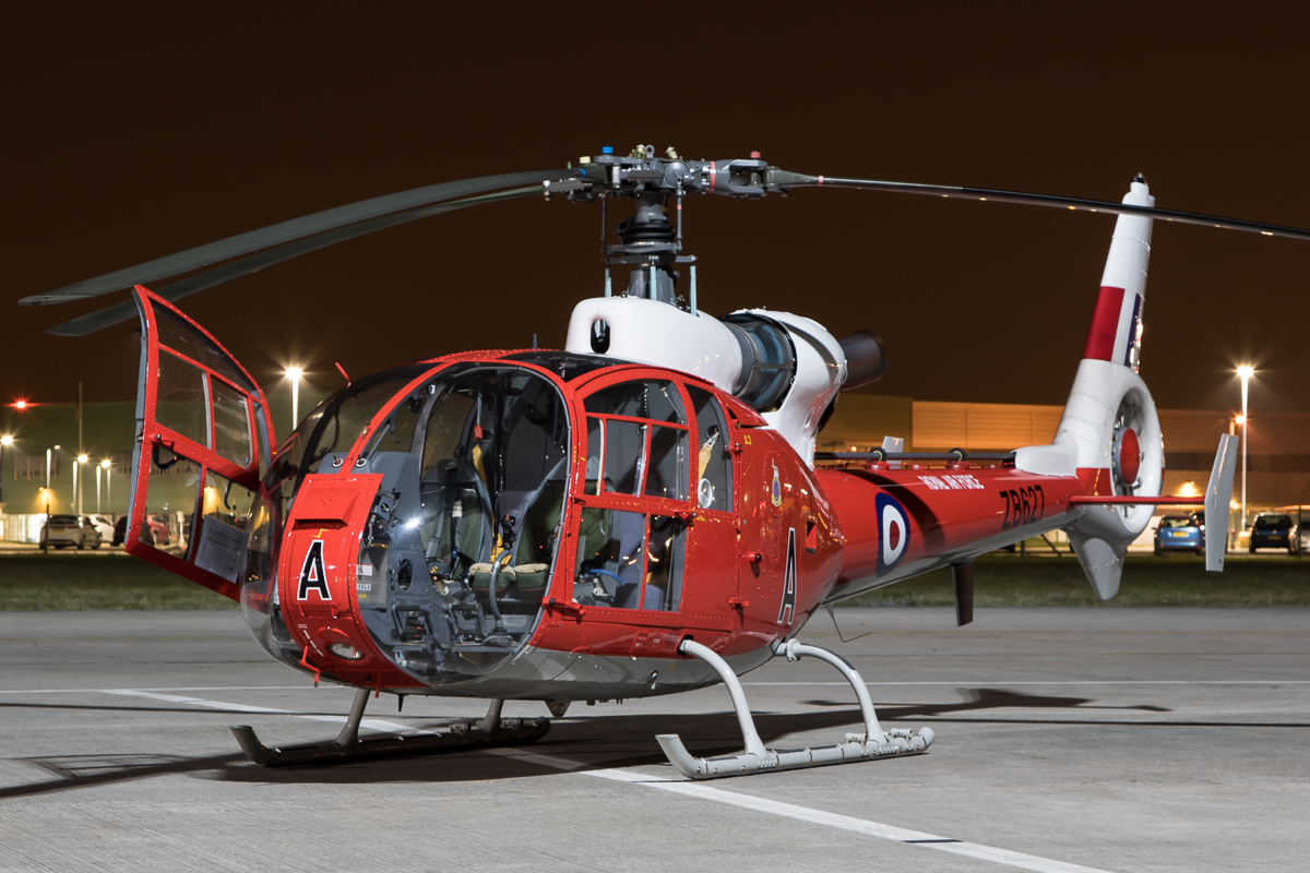 Northolt Nightshoot XX represents the Gazelle Squadron’s second successive appearance at the event. Whilst the intention was to bring the 32 Sqn VIP schemed Gazelle HT.3 – XZ934/G-CBSI – an unfortunate oil leak discovered just 24 hours prior to the event leading to it being grounded whilst the cause was identified. Fortunately, a second airframe was available and substituted in for the event – HT.3 ZB627 (G-CBSK) in its 2FTS scheme. Although this particular Gazelle was present at Nightshoot XIX, it was still appreciated for its attendance for many who would have missed it the previous time.