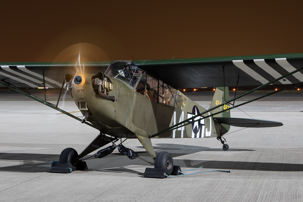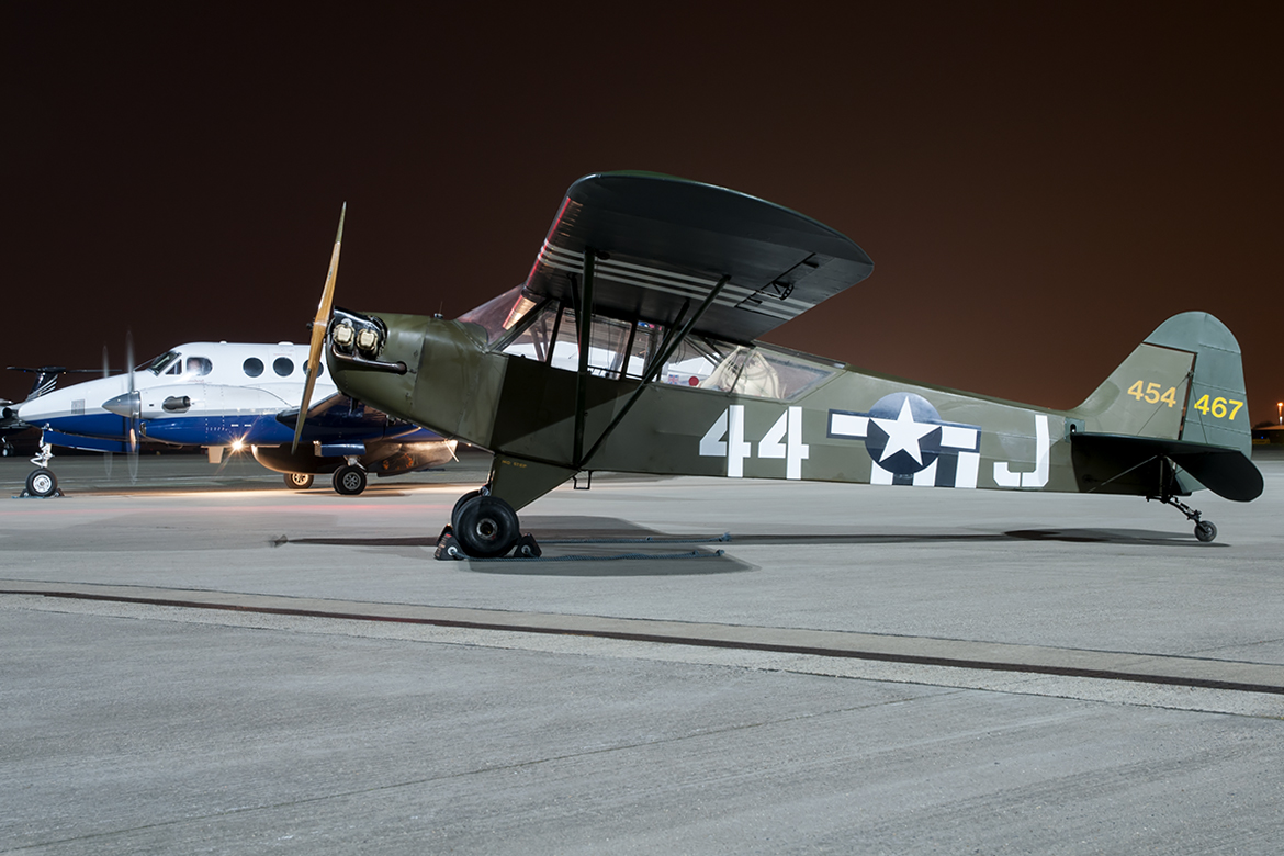 The Piper L-4J’s history is much longer and very different, as you expect from the age of the aircraft – a mere 67 years old! Delivered to the United States Army Air Force (USAAF) in 1948 with military serial 45-4467 it was too late to see any action during World War Two where so many of the type were used for reconnaissance and artillery spotting duties (amongst a list of many other varied tasks). This military background of the type is well represented on this particular aircraft carrying the code 44-J along with a set of invasion stripe markings.