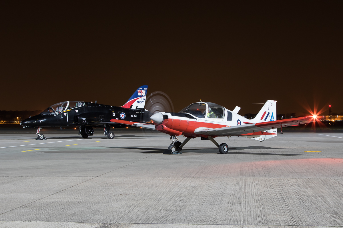 The Royal Navy treated attendees to a show of both fixed-wing types currently operated out of RNAS Culdrose. The newest to the base, the Avenger T1, is operated by 750 NAS and arrived at the naval base in mid-2011 before entering service and replacing the venerable Jetstream – which had been in service for over 30 years -towards the end of 2012. Whilst the aircraft on first glance may appear similar to the RAF’s King Air trainers, it is based upon the larger Beechcraft King Air 350 that is the platform for the elusive 14 Sqn Shadow R1s, and has a distinctive ‘canoe’ underneath the centre fuselage. Just four Avengers are operated by 750 NAS and it’s appearance at Nightshoot XX marks the event debut of the type.