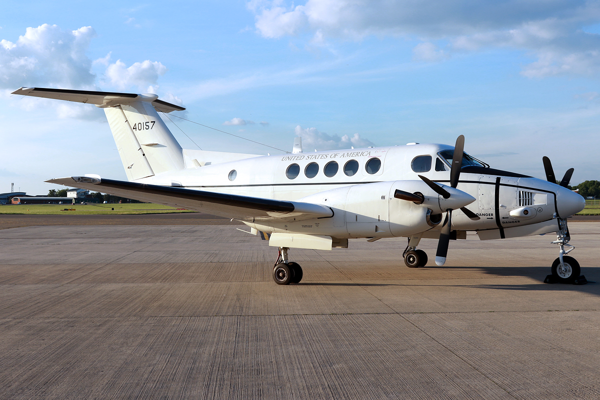A surprise attendee at the event, and also making its debut, was that of a US Army C-12 Huron (84-0157 the example in question). Operated by the 214th Aviation Regiment out of Wiesbaden, Germany the twin-engined Super King Air derivative is primarily used as passenger and light cargo transport aircraft. In a pristine looking white scheme there is little to give away the operator other than the ‘United States of America’ titles running across the top of the fuselage and added defensive air suite sensors. The C-12 was to provide the only engine run of the evening with the crew departing back to Germany part way through the event.
