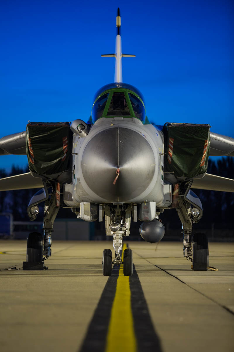 Once we were all fed and watered, our group moved to the Expeditionary Forces Aircraft Shelter System hangar. Probably the most unique, but also under-utilised part of the shoot – it would have been great to see a cameo posing pilot with the jet, canopy up and lights on. Even using push in intake blanks on this jet would have been great, but instead it had the bag-type draped over it. We didn’t have a great deal of time to shoot it regardless, as word came through that the 12 Squadron centenary Tornado was to be towed away for maintenance, so our group moved over to shoot it. By the time we had a chance to return, the lights in the EFASS hangar had been turned off.