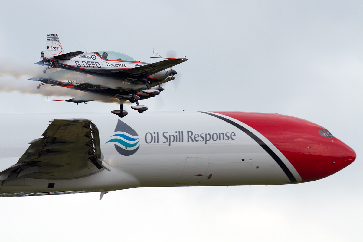 Apart from the Reds, who performed their flat display as a result of the low cloud base, the remainder of the display teams taking part were civilian acts often seen and welcomed on the UK display circuit. Fortunately, the short crowd line is the perfect venue for teams like the Breitling Wingwalkers who put on an entertaining routine in their two bright orange Boeing Stearmans, which felt closer and louder than larger sites. The Wingwalkers were joined by The Blades who arrived in style with a unique formation with Oil Spill Response Boeing 727 G-OSRB owned by their parent company 2Excel Aviation. The former FedEx tri-jet has undergone conversion to allow the jet to spray dispersants on maritime oil spills and is funded by a number of large oil companies to be ready to respond in case of an emergency. The red and white jet was put through its paces with an awe-inspiring display in the capable hands of Dan Griffith – a man who seems to be capable of getting the best out of any aircraft he flies regardless of size!